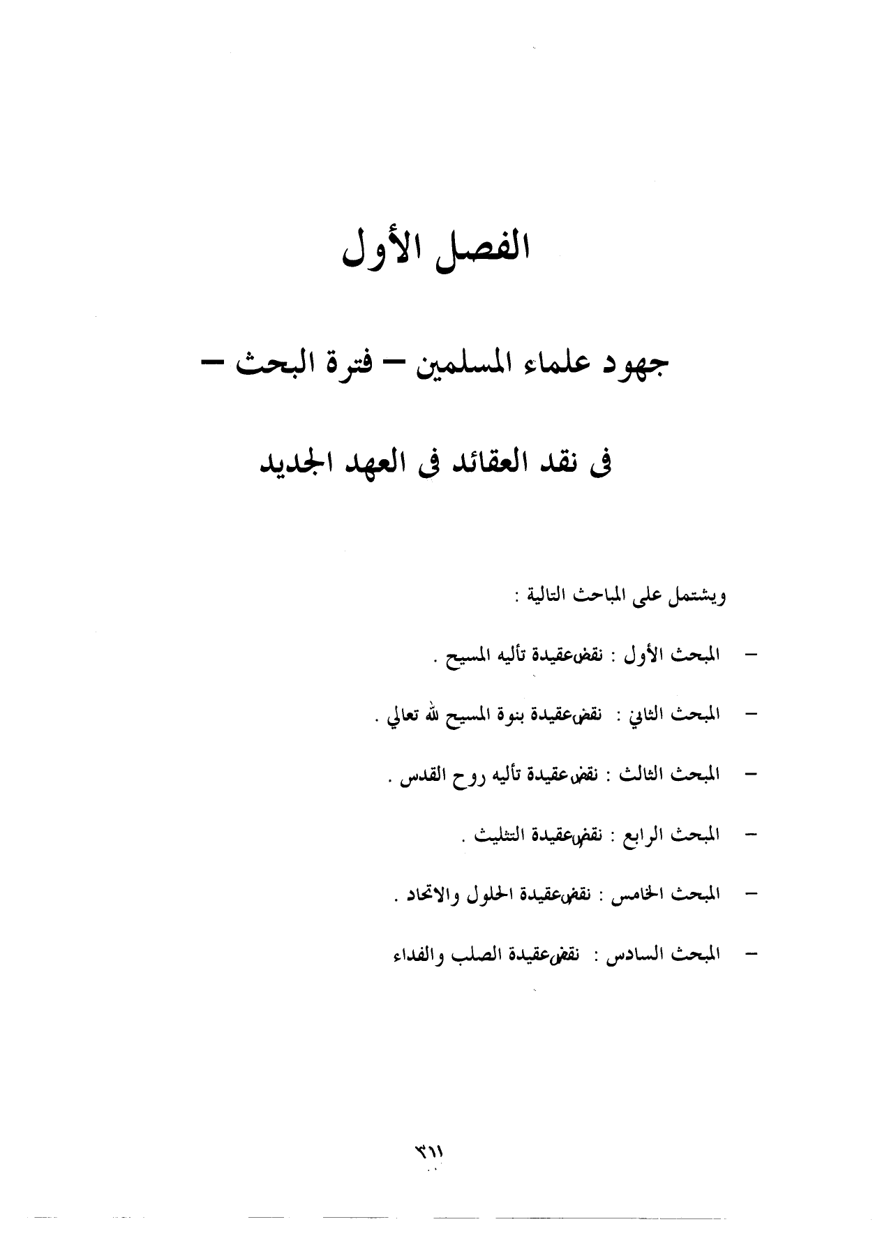 الفصل الأول جهود علماء المسلمين -فترة البحث- في نقد العقائد في العهد الجديد
