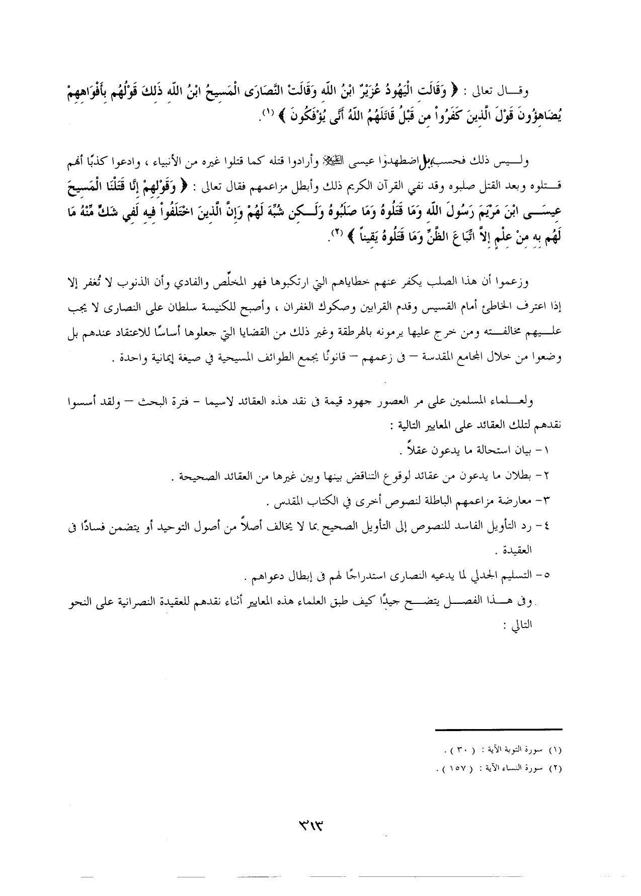 وفي هذا الفصل يتضح جيدًا كيف طبق العلماء هذه المعايير أثناء نقدهم للعقيدة النصرانية على النحو التالي: