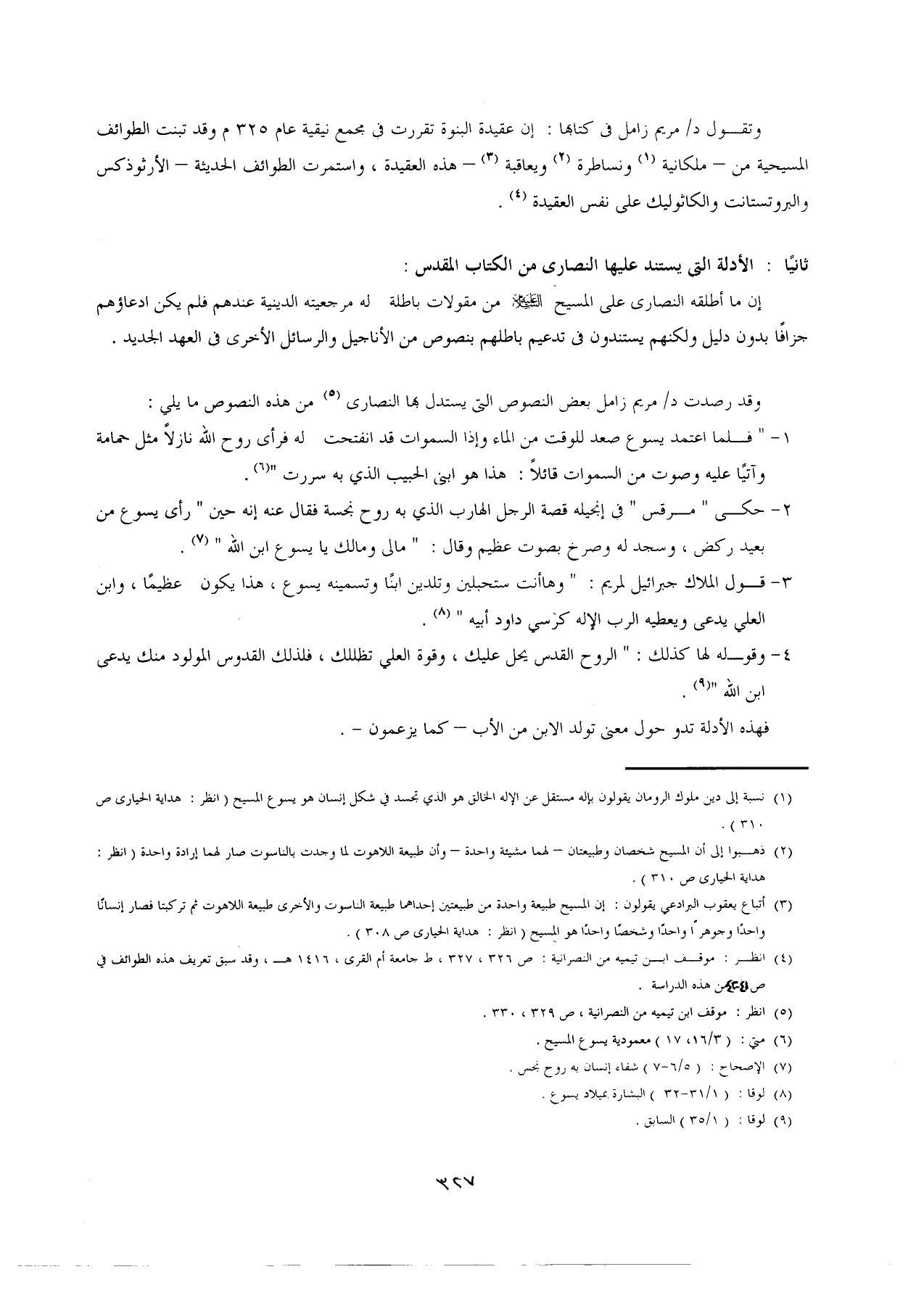 رقد رصدت د/مريم زامل بعض النصوص التي يستدل بها النصارى (¬5) من هذه النصوص ما يلي: