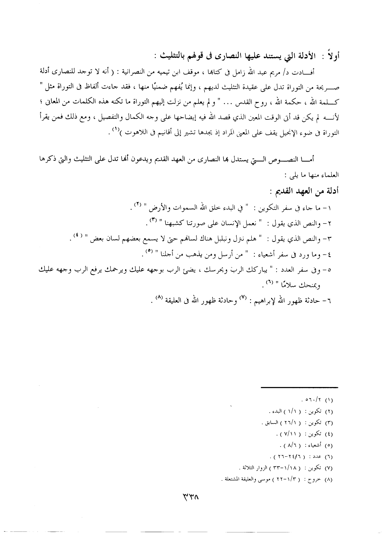 أما النصوص التي يستدل بها النصارى من العهد القديم ويدعون أنها تدل على التثليث والتي ذكرها العلماء منها ما يلي: