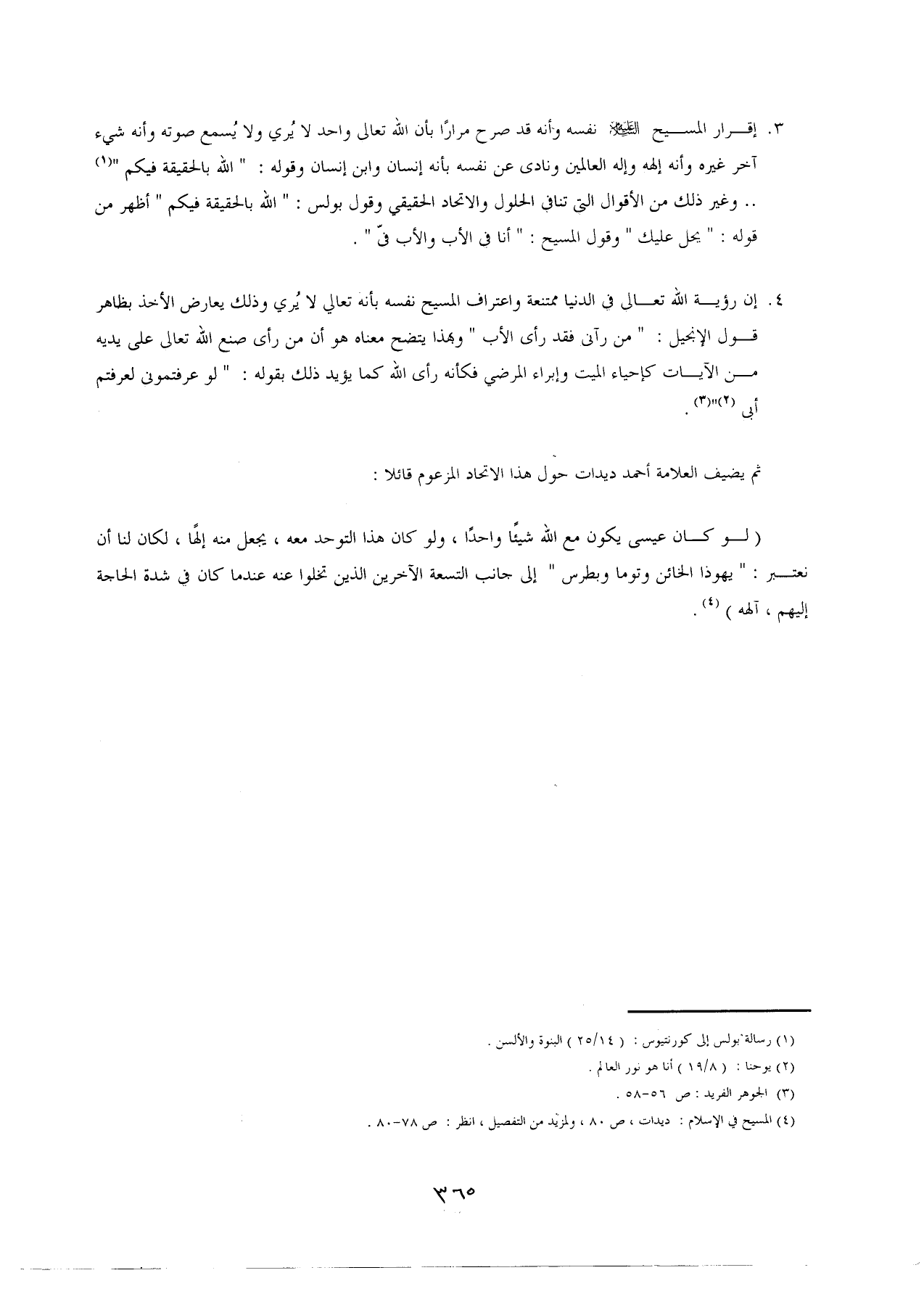 (¬4) المسيح في الإِسلام: ديدات، ص 80، ولمزيد من التفصيل، انظر: ص78 - 80.