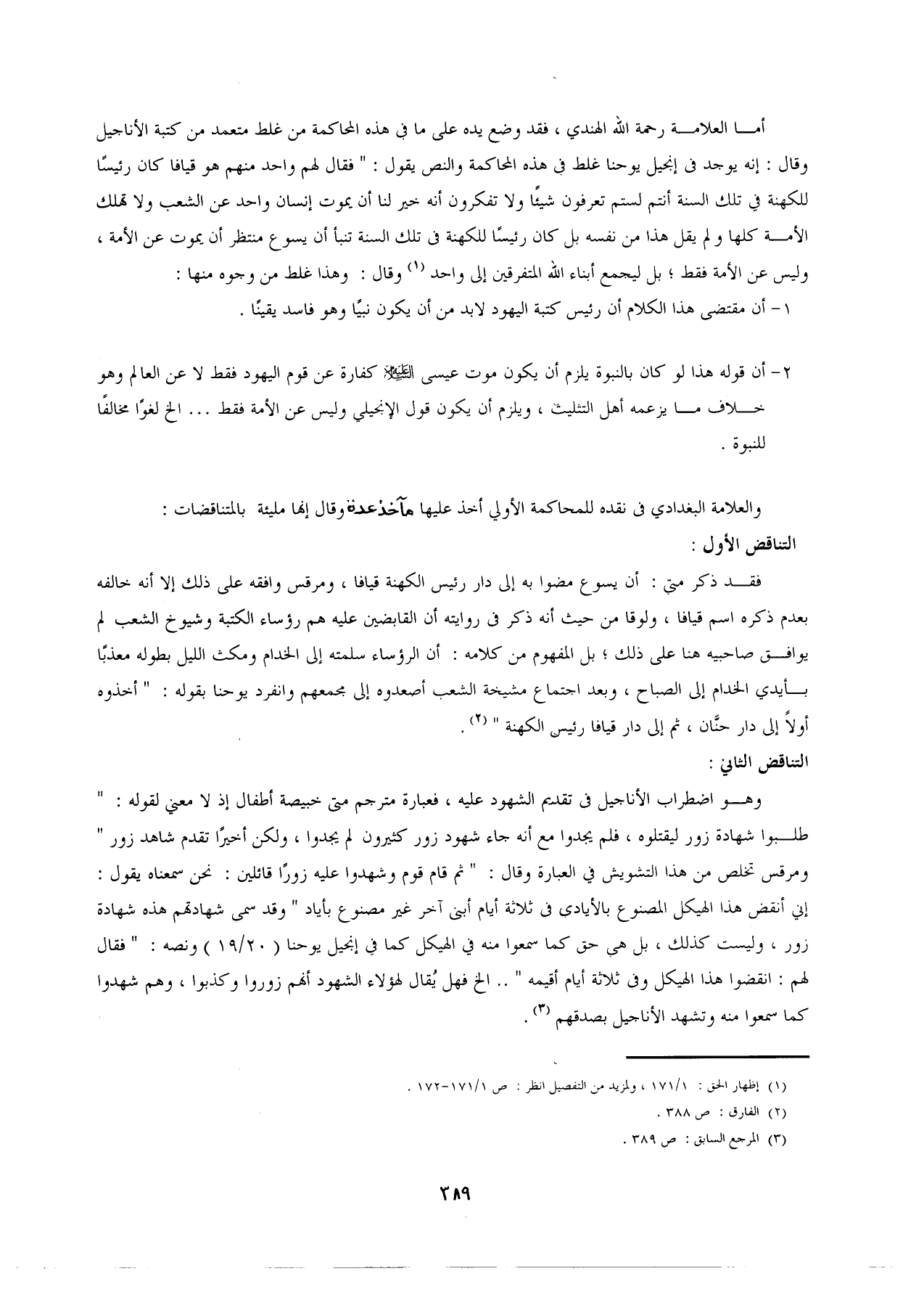 (¬1) إظهار الحق: 1/ 17، ولمزيد من التفصيل انظر: ص 1/ 171 - 172.