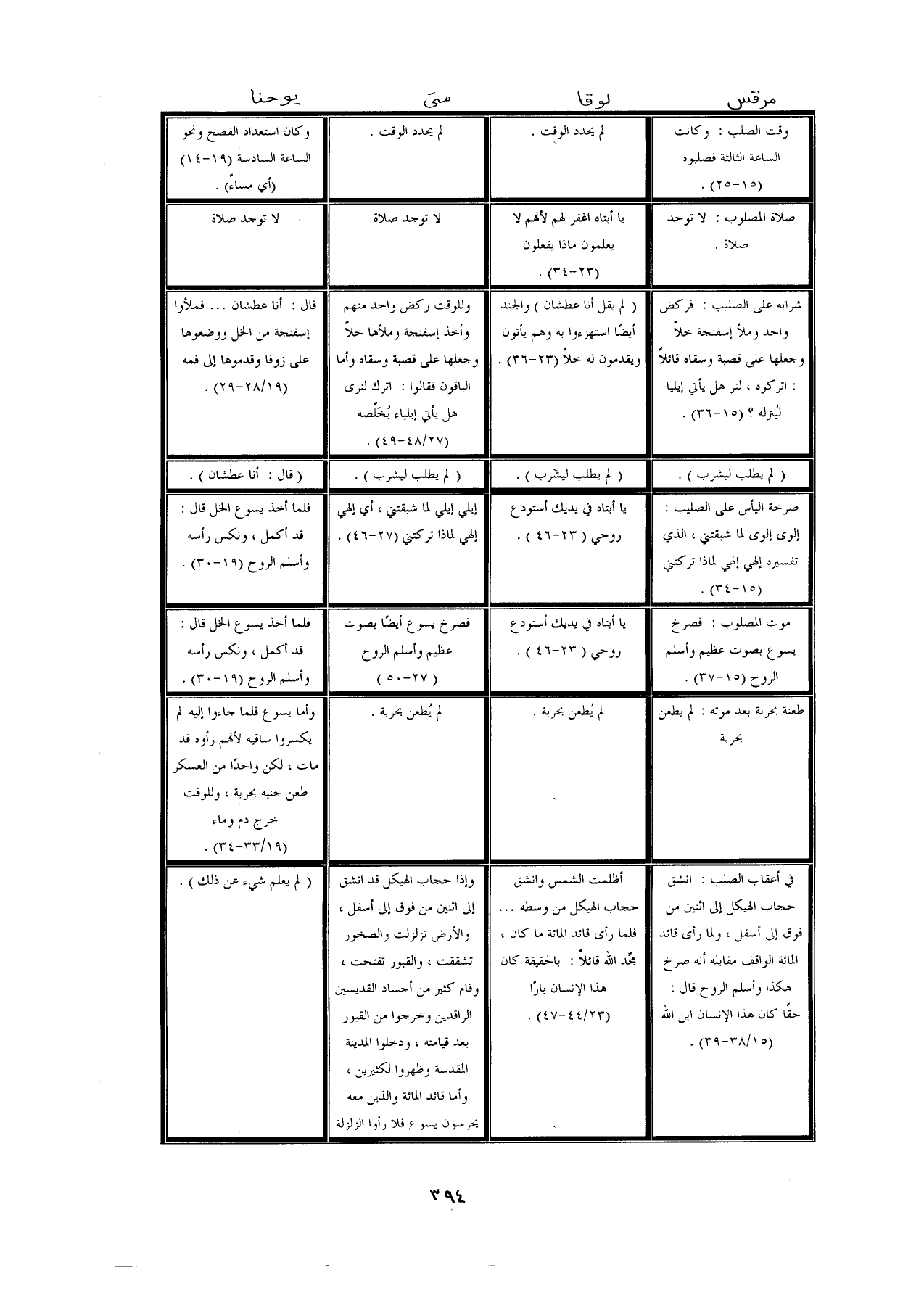 مرقس: وقت الصلب: وكانت الساعة الثالثة فصلبوه (15 - 25).