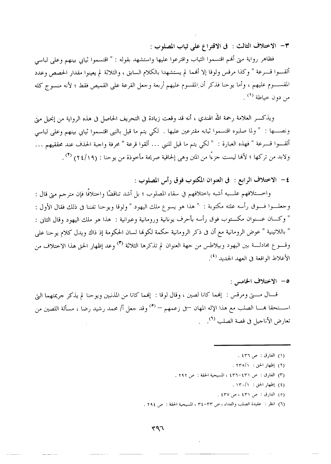 (¬6) انظر: عقيدة الصلب والفداء، ص 33 - 34، المسيحية الحقة: ص 294.