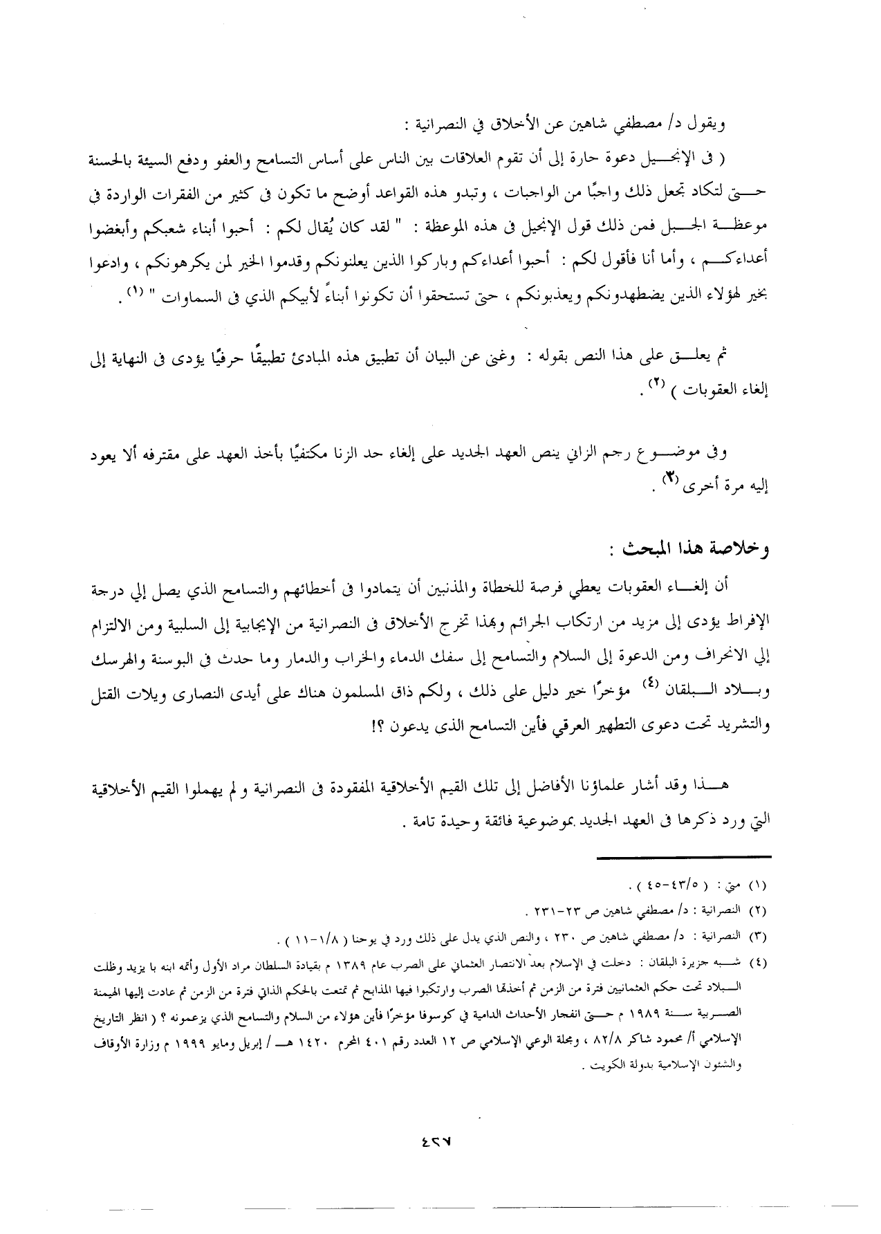 (¬3) النصرانية: د/ مصطفي شاهين ص230، والنص الذي يدلّ على ذلك ورد في يوحنا (8/ 1 - 11).