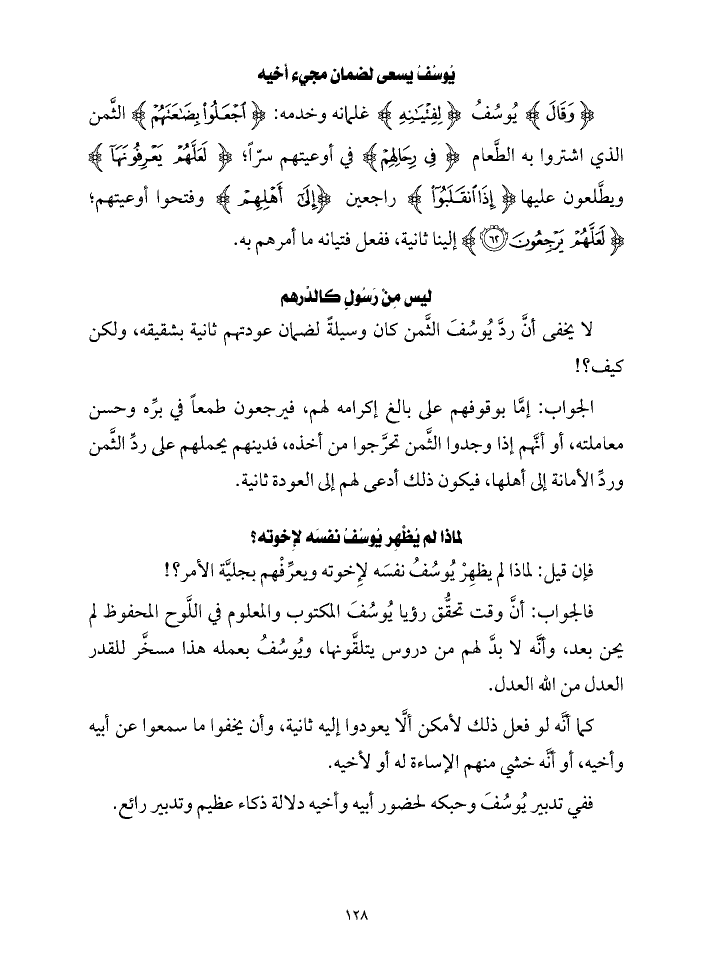 لا يخفى أنَّ ردَّ يُوسُفَ الثَّمن كان وسيلةً لضمان عودتهم ثانية بشقيقه، ولكن كيف؟!