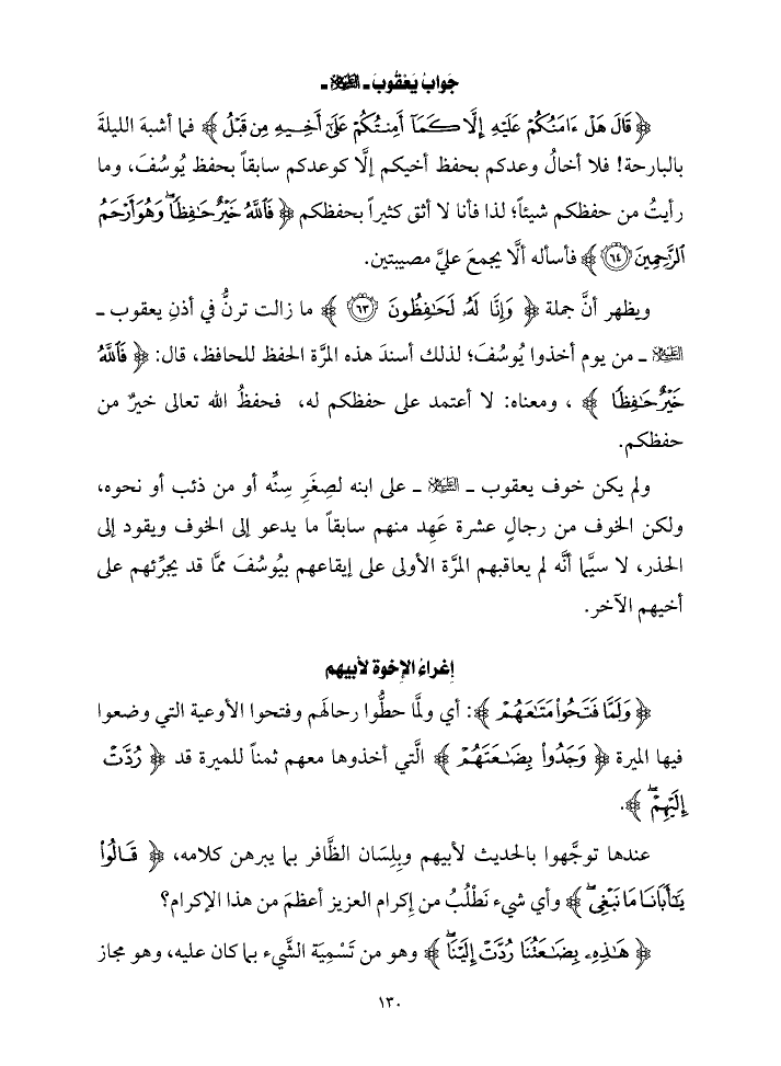 جَوابُ يَعْقُوبَ ـ - عليه السلام - ـ