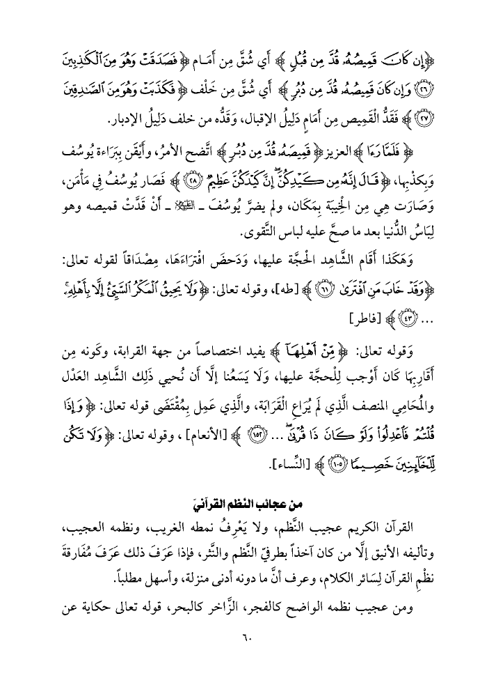 القرآن الكريم عجيب النَّظم، ولا يَعْرِفُ نمطه الغريب، ونظمه العجيب، وتأليفه الأنيق إلَّا من كان آخذاً بطرفيّ النَّظم والنَّثر، فإذا عَرَفَ ذلك عَرَفَ مُفَارقةَ نظْمِ القرآن لِسَائر الكلام، وعرف أنَّ ما دونه أدنى منزلة، وأسهل مطلباً.