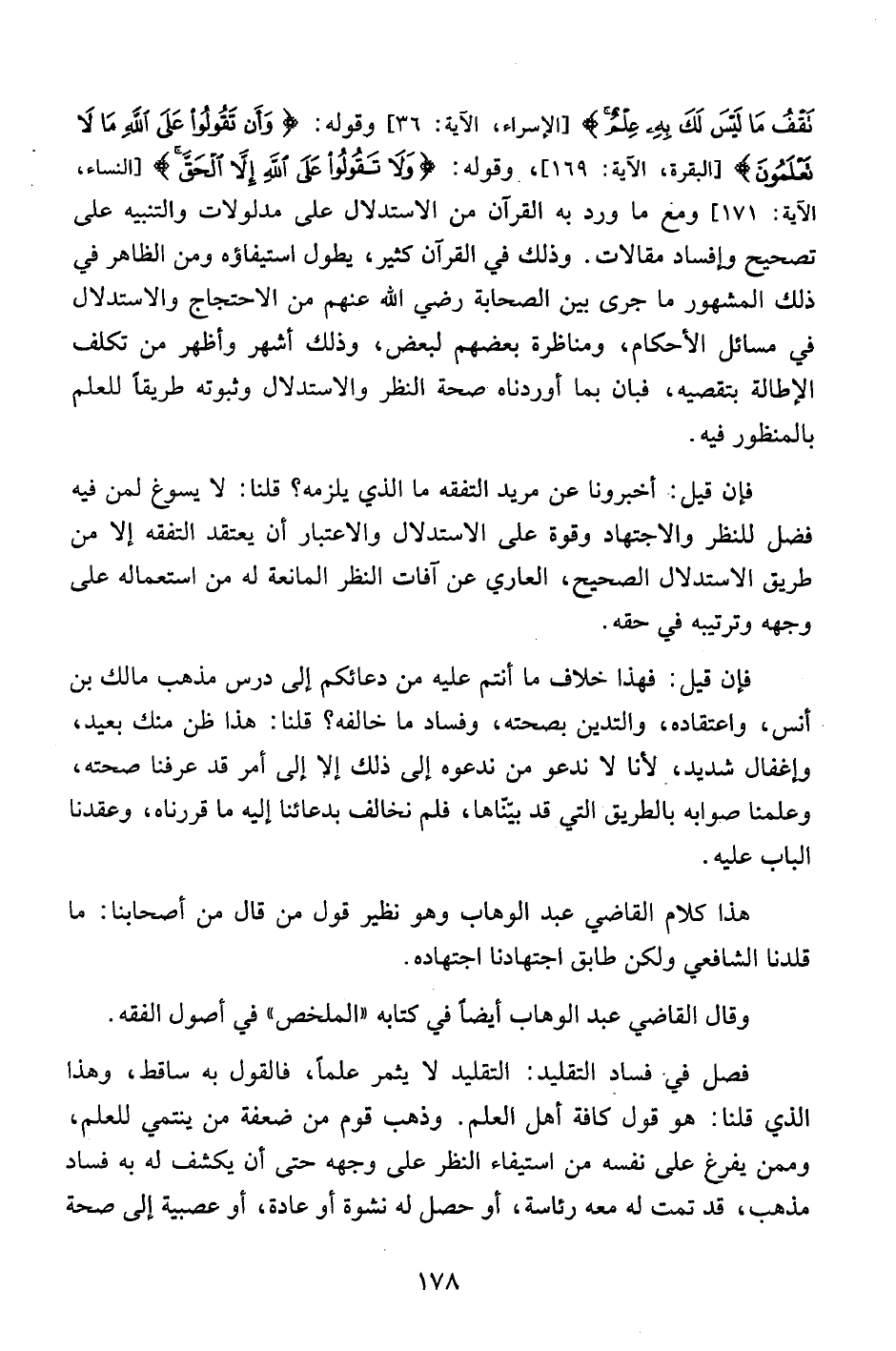 وقال القاضي عبد الوهاب أيضاً في كتابه "الملخص" في أصول الفقه.