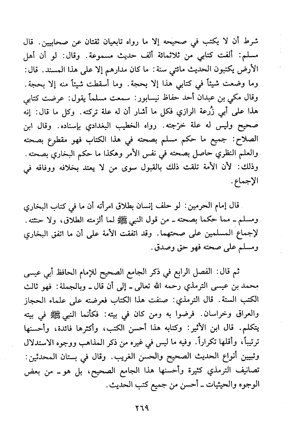 قال إمام الحرمين: لو حلف إنسان بطلاق امرأته أن ما في كتاب البخاري ومسلم – مما حكما بصحته– من قول النبي صلى الله عليه وسلم لما ألزمته الطلاق، ولا حنثته. لإجماع المسلمين على صحتهما. وقد اتفقت الأمة على أن ما اتفق البخاري ومسلم على صحته فهو حق وصدق.
