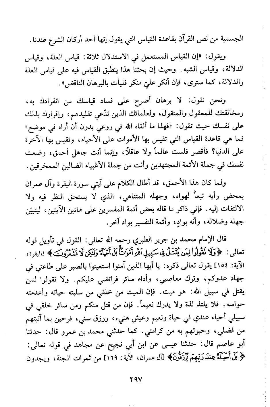 الجسمية من نص القرآن بقاعدة القياس التي يقول إنها أحد أركان الشرع عندنا.