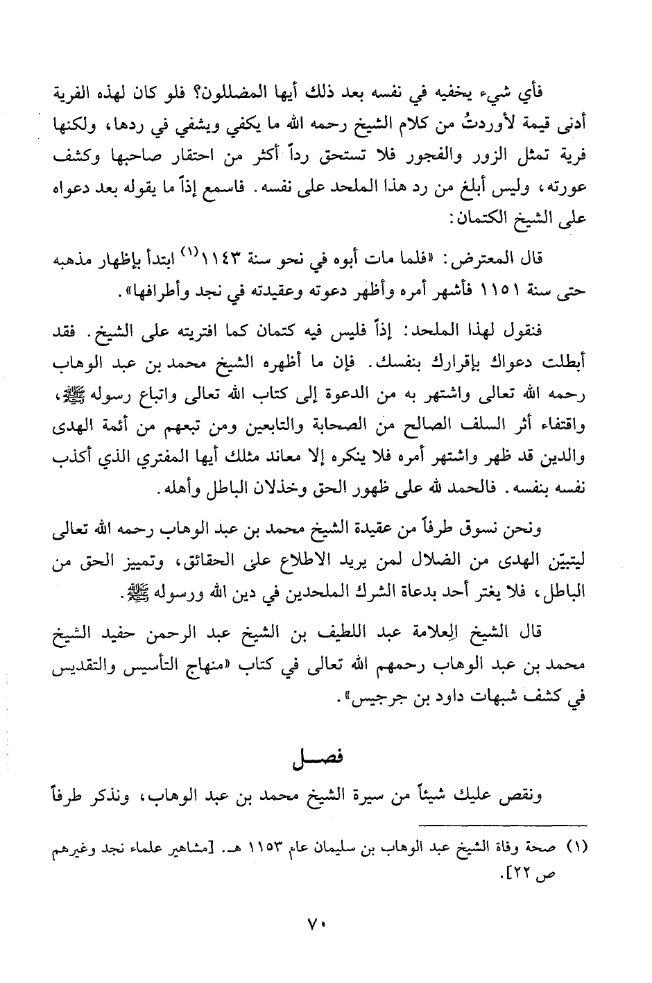 قال الشيخ العلامة عبد اللطيف بن الشيخ عبد الرحمن حفيد الشيخ محمد بن عبد الوهاب رحمهم الله تعالى في كتاب"منهاج التأسيس والتقديس في كشف شبهات داود بن جرجيس".