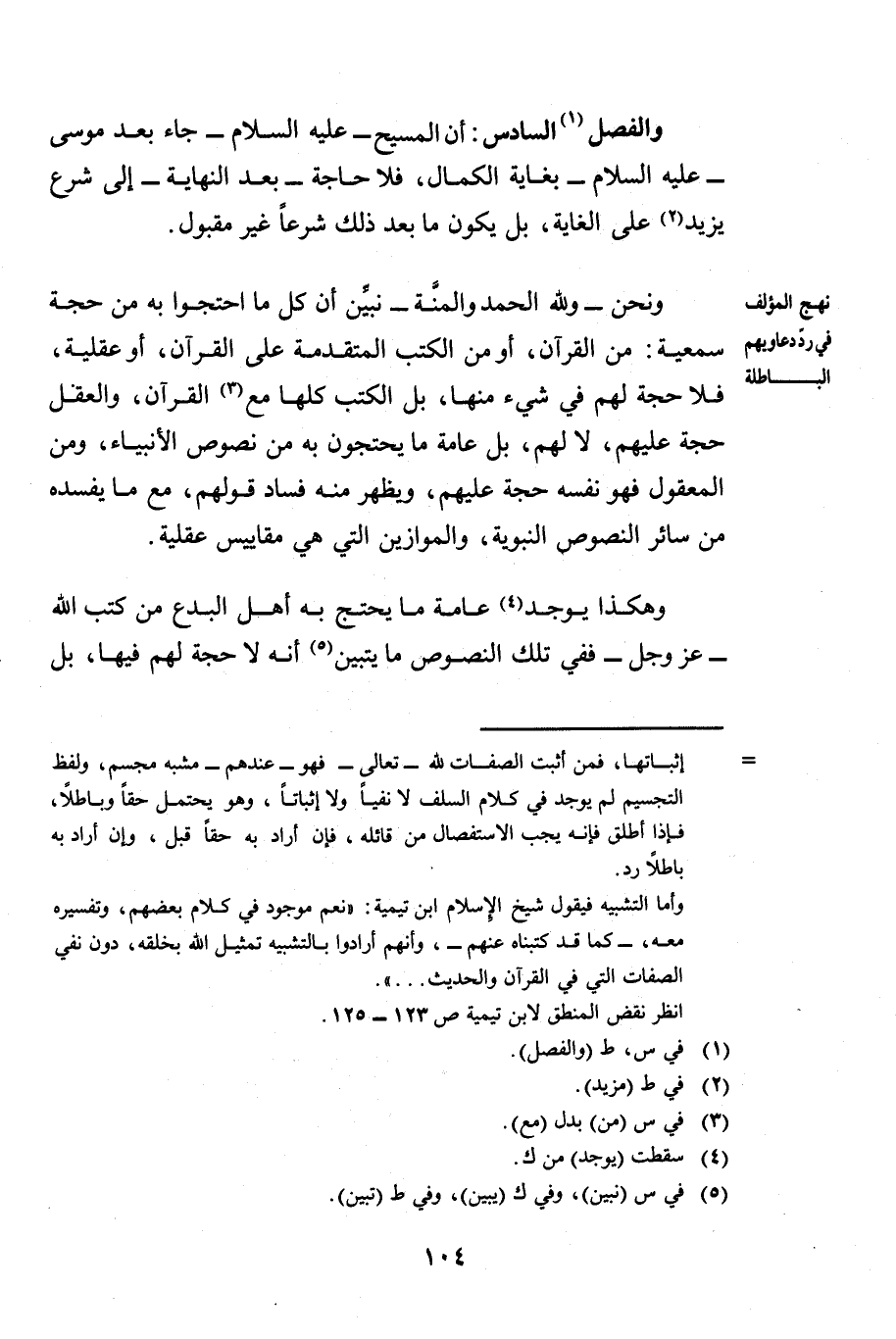 وَنَحْنُ وَلِلَّهِ الْحَمْدُ وَالْمِنَّةُ نُبَيِّنُ أَنَّ كُلَّ مَا احْتَجُّوا بِهِ مِنْ حُجَّةٍ سَمْعِيَّةٍ مِنَ الْقُرْآنِ، أَوْ مِنَ الْكُتُبِ الْمُتَقَدِّمَةِ عَلَى الْقُرْآنِ، أَوْ عَقْلِيَّةٍ، فَلَا حُجَّةَ لَهُمْ فِي شَيْءٍ مِنْهَا، بَلِ الْكُتُبُ كُلُّهَا مَعَ الْقُرْآنِ وَالْعَقْلِ حُجَّةٌ عَلَيْهِمْ، لَا لَهُمْ، بَلْ عَامَّةُ مَا يَحْتَجُّونَ بِهِ مِنْ نُصُوصِ الْأَنْبِيَاءِ، وَمِنَ الْمَعْقُولِ فَهُوَ نَفْسُهُ حُجَّةٌ عَلَيْهِمْ، وَيَظْهَرُ مِنْهُ فَسَادُ قَوْلِهِمْ مَعَ مَا يُفْسِدُهُ مِنْ سَائِرِ النُّصُوصِ النَّبَوِيَّةِ، وَالْمَوَازِينِ الَّتِي هِيَ مَقَايِيسُ عَقْلِيَّةٌ.