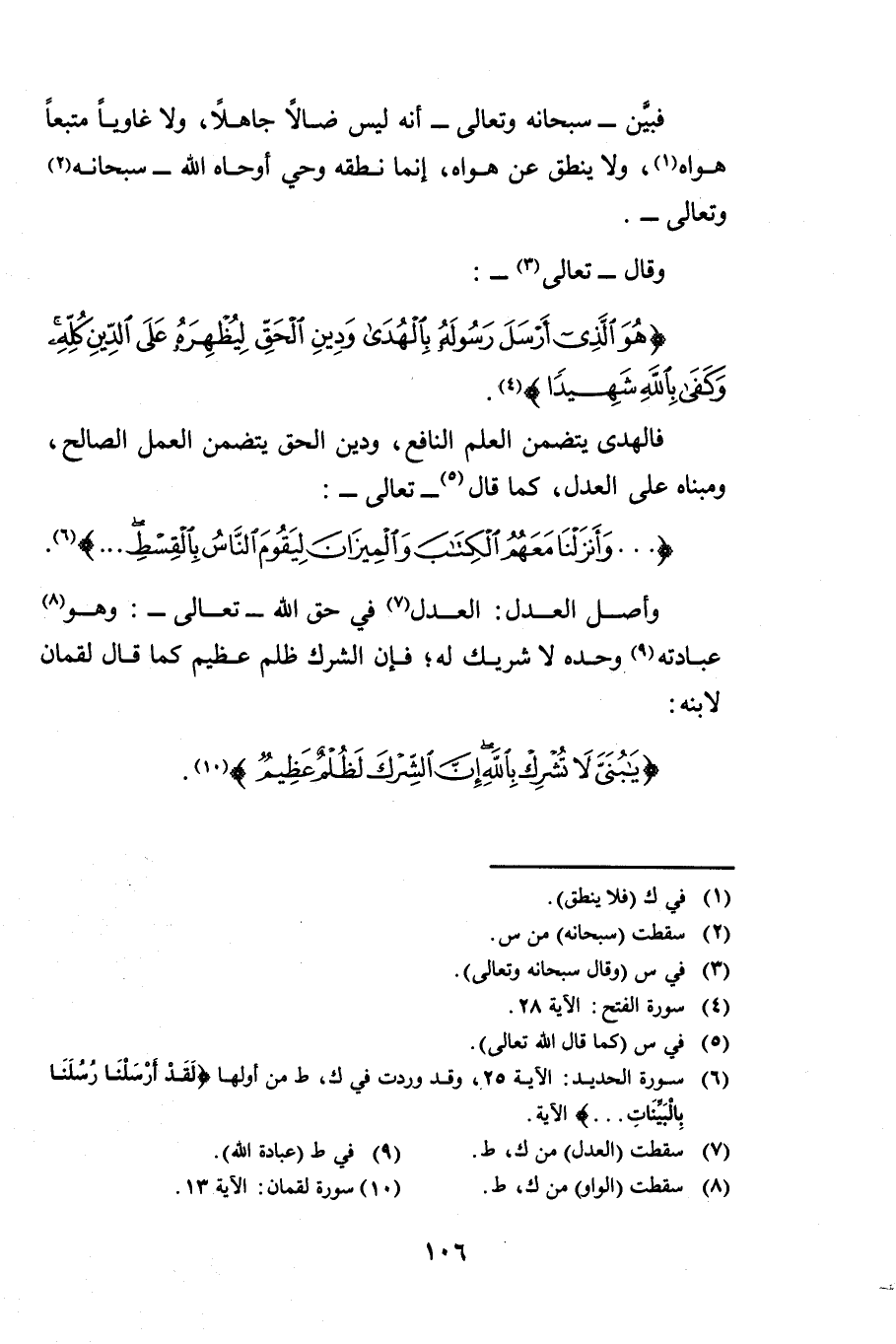 فَالْهُدَى يَتَضَمَّنُ الْعِلْمَ النَّافِعَ، وَدِينُ الْحَقِّ يَتَضَمَّنُ الْعَمَلَ الصَّالِحَ، وَمَبْنَاهُ عَلَى الْعَدْلِ، كَمَا قَالَ تَعَالَى: {وَأَنْزَلْنَا مَعَهُمُ الْكِتَابَ وَالْمِيزَانَ لِيَقُومَ النَّاسُ بِالْقِسْطِ} [الحديد: 25] .