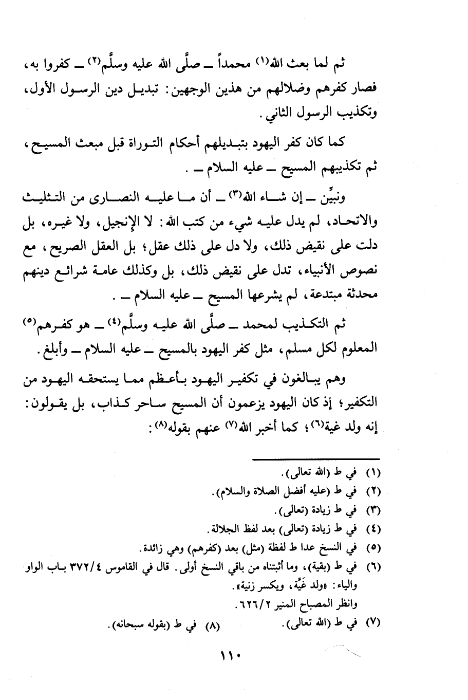 ثُمَّ لَمَّا بَعَثَ اللَّهُ مُحَمَّدًا صَلَّى اللَّهُ عَلَيْهِ وَسَلَّمَ كَفَرُوا بِهِ فَصَارَ كُفْرُهُمْ وَضَلَالُهُمْ مِنْ هَذَيْنِ الْوَجْهَيْنِ: تَبْدِيلَ دِينِ الرَّسُولِ الْأَوَّلِ، وَتَكْذِيبَ الرَّسُولِ الثَّانِي.
