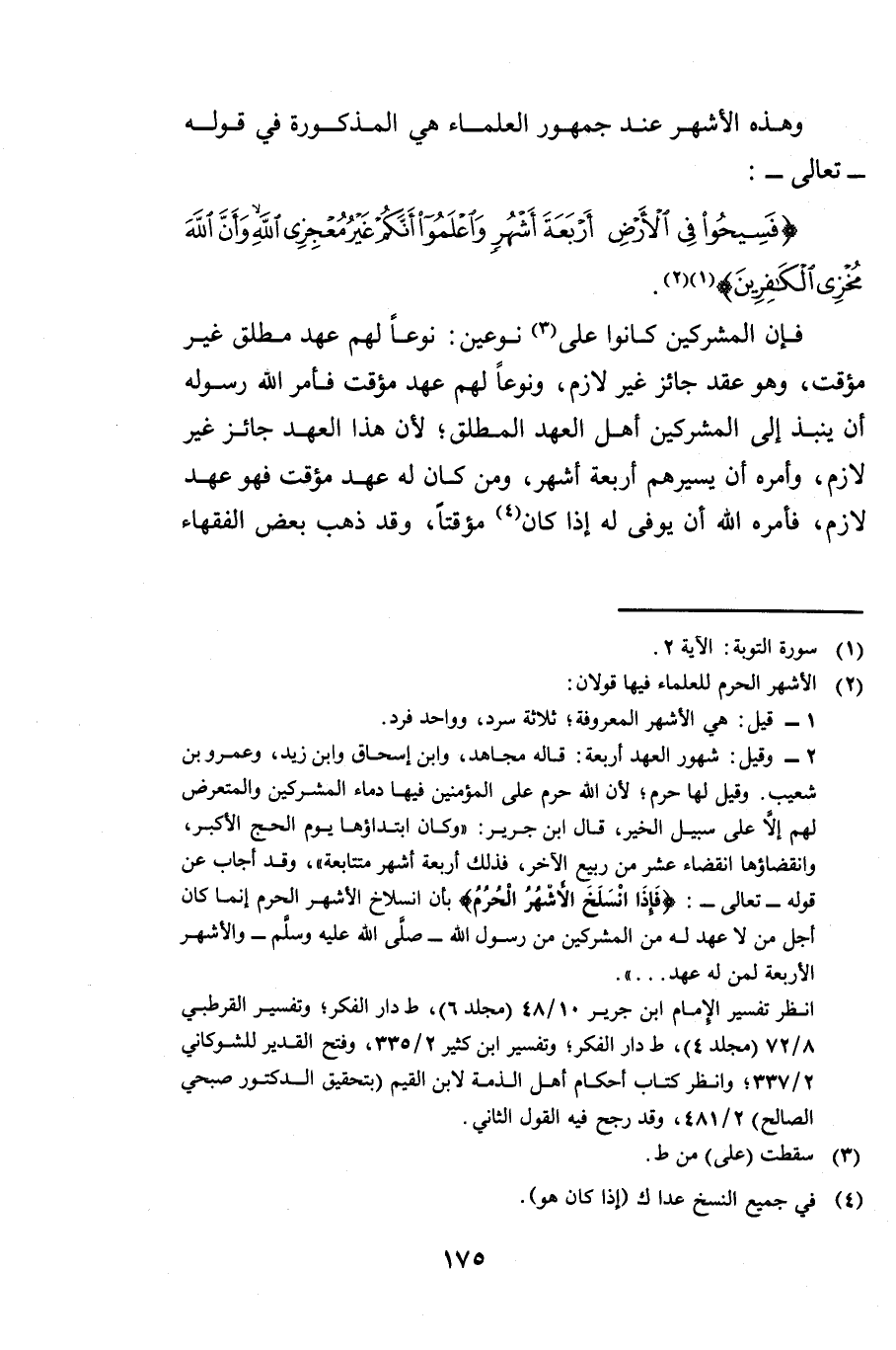 وَهَذِهِ الْأَشْهُرُ عِنْدَ جُمْهُورِ الْعُلَمَاءِ هِيَ الْمَذْكُورَةُ فِي قَوْلِهِ تَعَالَى: {فَسِيحُوا فِي الْأَرْضِ أَرْبَعَةَ أَشْهُرٍ وَاعْلَمُوا أَنَّكُمْ غَيْرُ مُعْجِزِي اللَّهِ وَأَنَّ اللَّهَ مُخْزِي الْكَافِرِينَ} [التوبة: 2] .