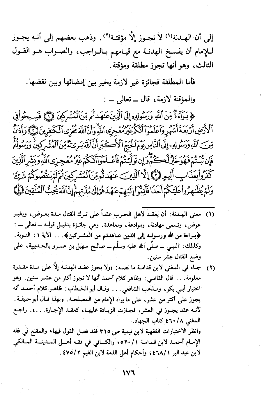 إِلَى أَنَّ الْهُدْنَةَ لَا تَجُوزُ إِلَّا مُؤَقَّتَةً، وَذَهَبَ بَعْضُهُمْ إِلَى أَنَّهُ يَجُوزُ لِلْإِمَامِ أَنْ يَفْسَخَ الْهُدْنَةَ مَعَ قِيَامِهِمْ بِالْوَاجِبِ، وَالصَّوَابُ هُوَ الْقَوْلُ الثَّالِثُ، وَهُوَ أَنَّهَا تَجُوزُ مُطْلَقَةً وَمُؤَقَّتَةً.