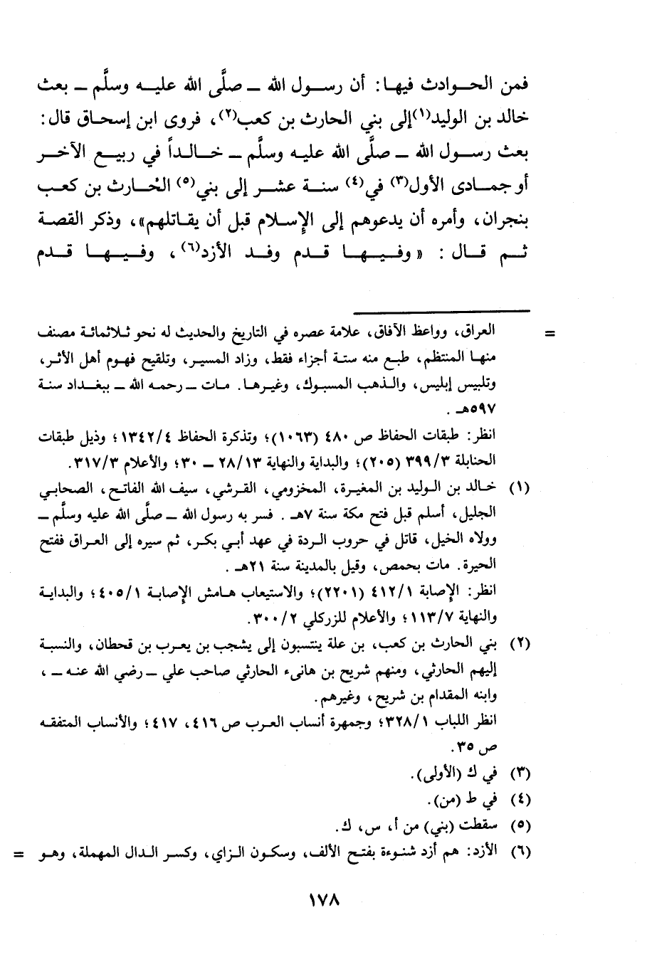 فَمِنَ الْحَوَادِثِ فِيهَا أَنَّ رَسُولَ اللَّهِ صَلَّى اللَّهُ عَلَيْهِ وَسَلَّمَ بَعَثَ خَالِدَ بْنَ الْوَلِيدِ إِلَى بَنِي الْحَارِثِ بْنِ كَعْبٍ فَرَوَى ابْنُ إِسْحَاقَ قَالَ: بَعَثَ رَسُولُ اللَّهِ صَلَّى اللَّهُ عَلَيْهِ وَسَلَّمَ خَالِدًا فِي رَبِيعٍ الْآخَرِ أَوْ جُمَادَى الْأَوَّلِ فِي سَنَةِ عَشْرٍ إِلَى بَنِي الْحَارِثِ بْنِ كَعْبٍ بِنَجْرَانَ، وَأَمَرَهُ أَنْ يَدْعُوَهُمْ إِلَى الْإِسْلَامِ قَبْلَ أَنْ يُقَاتِلَهُمْ، وَذَكَرَ الْقِصَّةَ، ثُمَّ قَالَ: وَفِيهَا قَدِمَ وَفْدُ الْأَزْدِ وَفِيهَا قَدِمَ