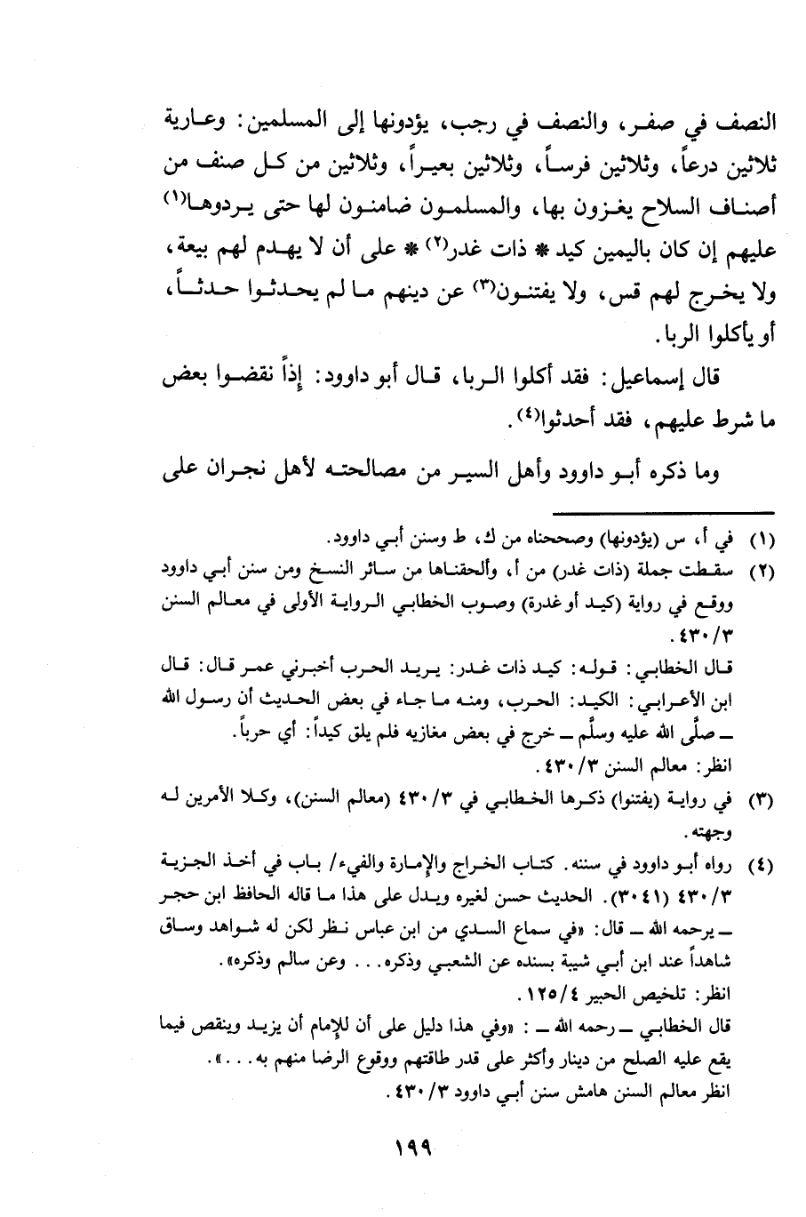 وَمَا ذَكَرَهُ أَبُو دَاوُدَ وَأَهْلُ السِّيَرِ مِنْ مُصَالَحَتِهِ لِأَهْلِ نَجْرَانَ عَلَى