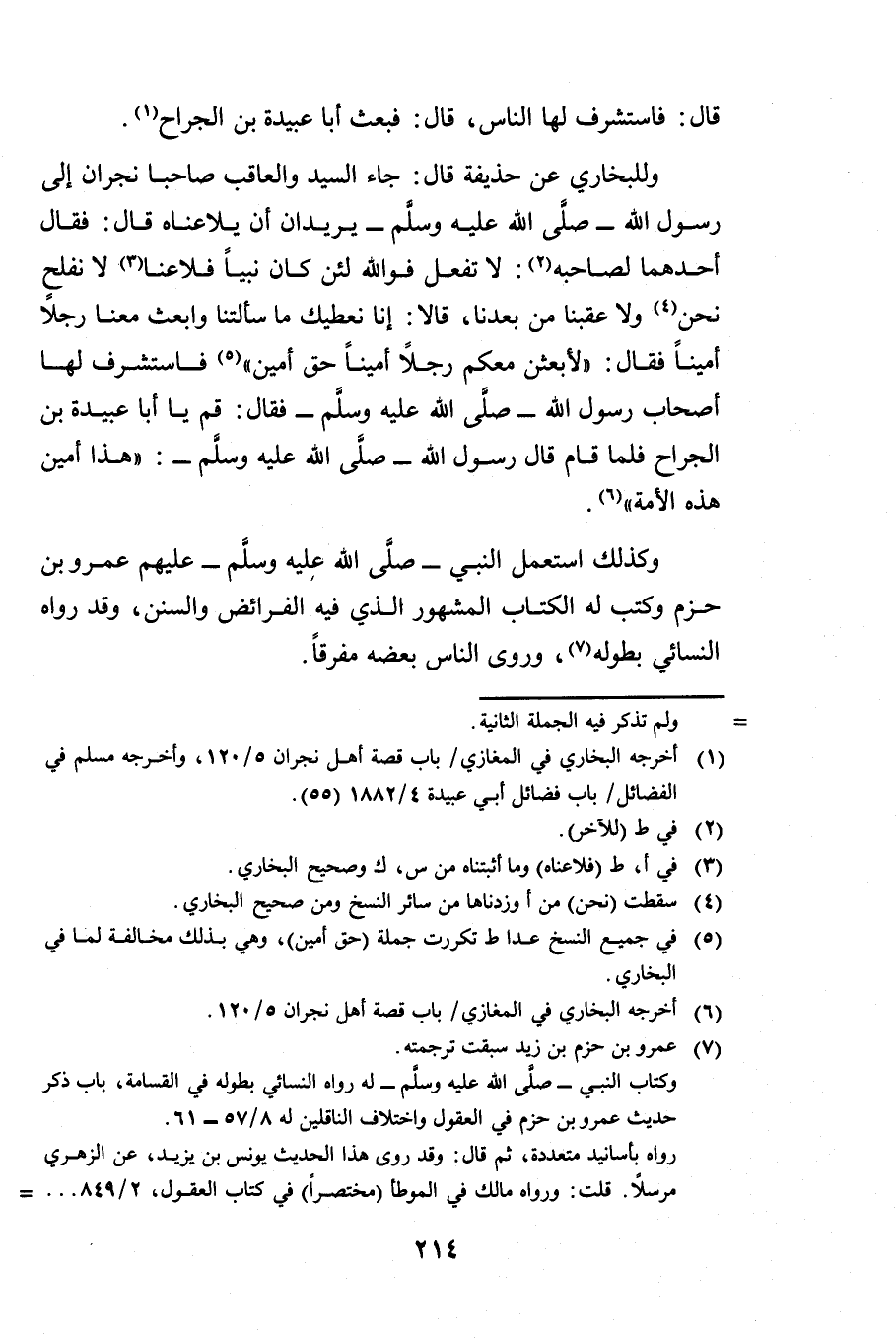 وَكَذَلِكَ اسْتَعْمَلَ النَّبِيُّ صَلَّى اللَّهُ عَلَيْهِ وَسَلَّمَ عَلَيْهِمْ عَمْرَو بْنَ حَزْمٍ، وَكَتَبَ لَهُ الْكِتَابَ الْمَشْهُورَ الَّذِي فِيهِ الْفَرَائِضُ وَالسُّنَنُ، وَقَدْ رَوَاهُ النَّسَائِيُّ بِطُولِهِ، وَرَوَى النَّاسُ بَعْضَهُ مُفَرَّقًا.
