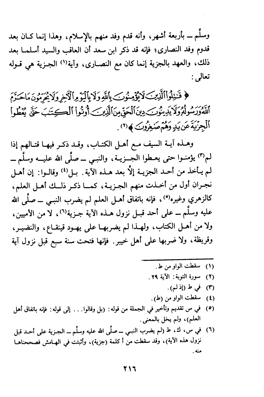 وَسَلَّمَ بِأَرْبَعَةِ أَشْهُرٍ، وَأَنَّهُ قَدِمَ وَفْدٌ مِنْهُمْ بِالْإِسْلَامِ، وَهَذَا إِنَّمَا كَانَ بَعْدَ قُدُومِ وَفْدِ النَّصَارَى ; فَإِنَّهُ قَدْ ذَكَرَ ابْنُ سَعْدٍ أَنَّ الْعَاقِبَ وَالسَّيِّدَ أَسْلَمَا بَعْدَ ذَلِكَ، وَالْعَهْدُ بِالْجِزْيَةِ إِنَّمَا كَانَ مَعَ النَّصَارَى، وَآيَةُ الْجِزْيَةِ هِيَ قَوْلُهُ تَعَالَى: {قَاتِلُوا الَّذِينَ لَا يُؤْمِنُونَ بِاللَّهِ وَلَا بِالْيَوْمِ الْآخِرِ وَلَا يُحَرِّمُونَ مَا حَرَّمَ اللَّهُ وَرَسُولُهُ وَلَا يَدِينُونَ دِينَ الْحَقِّ مِنَ الَّذِينَ أُوتُوا الْكِتَابَ حَتَّى يُعْطُوا الْجِزْيَةَ عَنْ يَدٍ وَهُمْ صَاغِرُونَ} [التوبة: 29] .