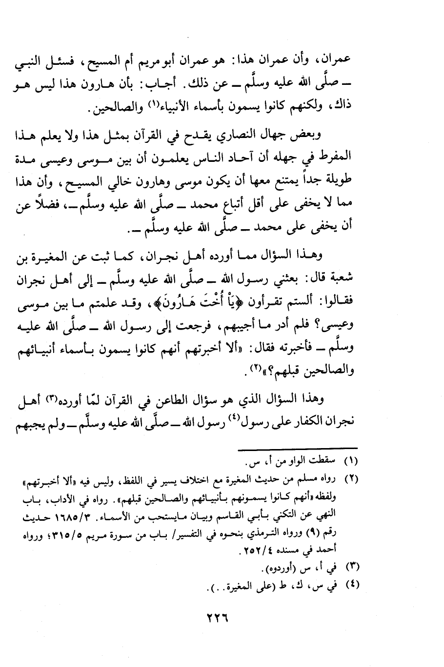 عِمْرَانَ، وَأَنَّ عِمْرَانَ هَذَا هُوَ عِمْرَانُ أَبُو مَرْيَمَ أَمِّ الْمَسِيحِ، فَسُئِلَ النَّبِيُّ صَلَّى اللَّهُ عَلَيْهِ وَسَلَّمَ عَنْ ذَلِكَ، أَجَابَ بِأَنَّ هَارُونَ هَذَا لَيْسَ هُوَ ذَاكَ، وَلَكِنَّهُمْ كَانُوا يُسَمُّونَ بِأَسْمَاءِ الْأَنْبِيَاءِ وَالصَّالِحِينَ.
