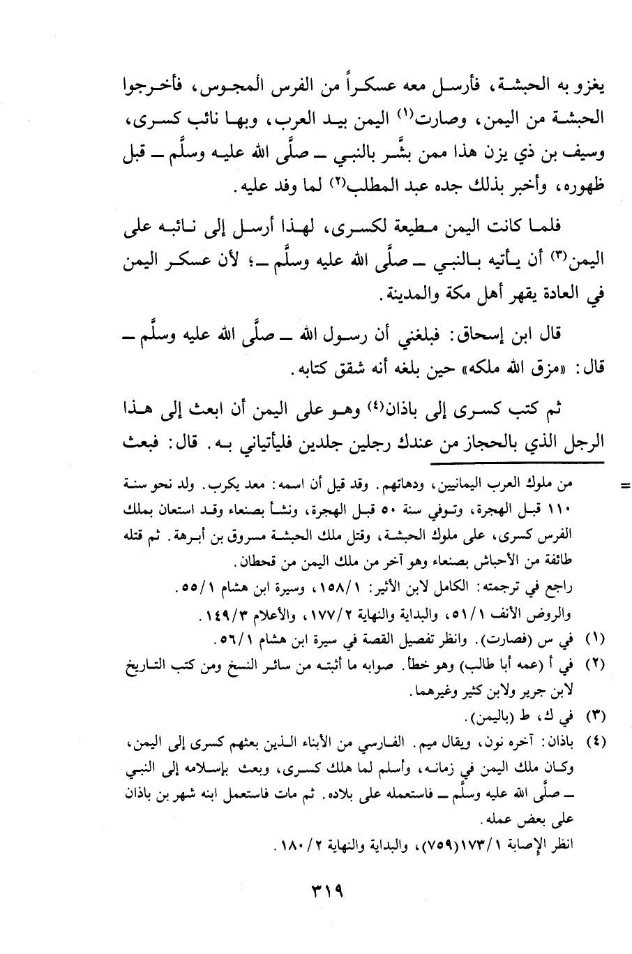 فَلَمَّا كَانَتِ الْيَمَنُ مُطِيعَةً لِكِسْرَى، لِهَذَا أَرْسَلَ إِلَى نَائِبِهِ عَلَى الْيَمَنِ أَنْ يَأْتِيَهُ بِالنَّبِيِّ صَلَّى اللَّهُ عَلَيْهِ وَسَلَّمَ ; لِأَنَّ عَسْكَرَ الْيَمَنِ فِي الْعَادَةِ يَقْهَرُ أَهْلَ مَكَّةَ وَالْمَدِينَةِ.