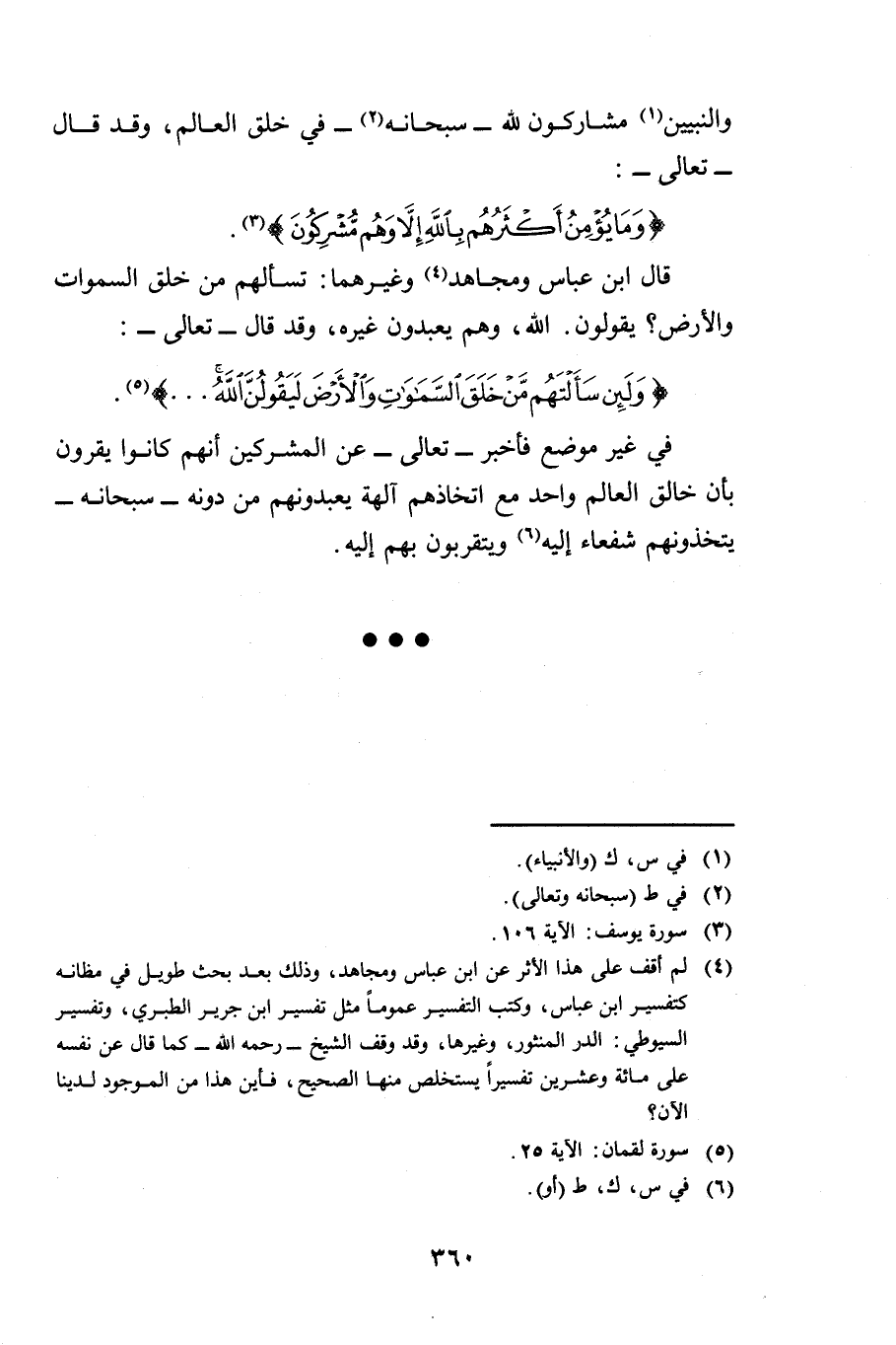 وَالنَّبِيِّينَ مُشَارِكُونَ لِلَّهِ سُبْحَانَهُ فِي خَلْقِ الْعَالَمِ، وَقَدْ قَالَ تَعَالَى: {وَمَا يُؤْمِنُ أَكْثَرُهُمْ بِاللَّهِ إِلَّا وَهُمْ مُشْرِكُونَ} [يوسف: 106] .