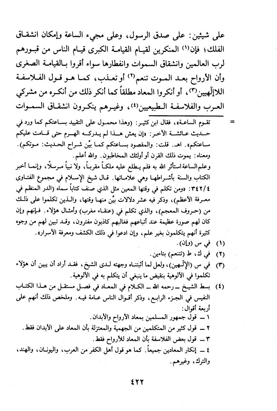 عَلَى شَيْئَيْنِ: عَلَى صِدْقِ الرَّسُولِ، وَعَلَى مَجِيءِ السَّاعَةِ وَإِمْكَانِ انْشِقَاقِ الْفَلَكِ ; فَإِنَّ الْمُنْكِرِينَ لِقِيَامِ الْقِيَامَةِ الْكُبْرَى قِيَامِ النَّاسِ مِنْ قُبُورِهِمْ لِرَبِّ الْعَالَمِينَ، وَانْشِقَاقِ السَّمَاوَاتِ وَانْفِطَارِهَا سَوَاءٌ أَقَرُّوا بِالْقِيَامَةِ الصُّغْرَى، وَأَنَّ الْأَرْوَاحَ بَعْدَ الْمَوْتِ تَنْعَمُ أَوْ تُعَذَّبُ، كَمَا هُوَ قَوْلُ الْفَلَاسِفَةِ اللَّاإِلَهِيِّينَ، أَوْ أَنْكَرُوا الْمَعَادَ مُطْلَقًا، كَمَا أَنْكَرَ ذَلِكَ مَنْ أَنْكَرَهُ مِنْ مُشْرِكِي الْعَرَبِ وَالْفَلَاسِفَةِ الطَّبِيعِيِّينَ، وَغَيْرُهُمْ يُنْكِرُونَ انْشِقَاقَ السَّمَاوَاتِ