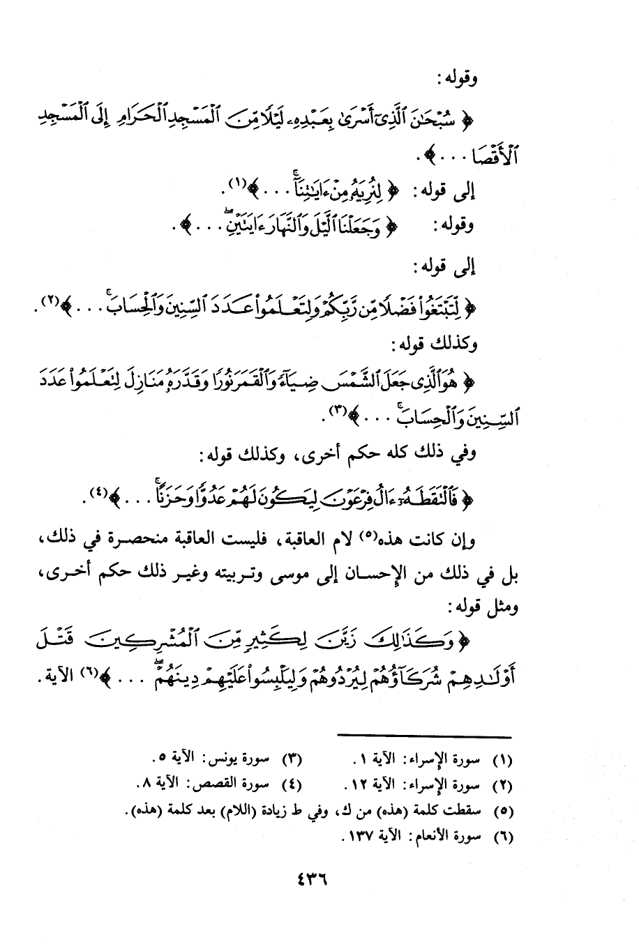 وَكَذَلِكَ قَوْلُهُ: {وَجَعَلْنَا اللَّيْلَ وَالنَّهَارَ آيَتَيْنِ} [الإسراء: 12] إِلَى قَوْلِهِ: {لِتَبْتَغُوا فَضْلًا مِنْ رَبِّكُمْ وَلِتَعْلَمُوا عَدَدَ السِّنِينَ وَالْحِسَابَ} [الإسراء: 12] .