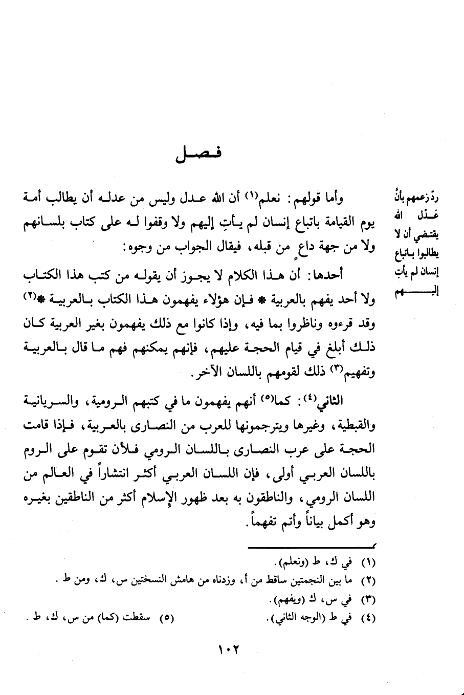 وَأَمَّا قَوْلُهُمْ: نَعْلَمُ أَنَّ اللَّهَ عَدْلٌ وَلَيْسَ مِنْ عَدْلِهِ أَنْ يُطَالِبَ أُمَّةً يَوْمَ الْقِيَامَةِ بِاتِّبَاعِ إِنْسَانٍ لَمْ يَأْتِ إِلَيْهِمْ وَلَا وَقَفُوا لَهُ عَلَى كِتَابٍ بِلِسَانِهِمْ وَلَا مِنْ جِهَةِ دَاعٍ مِنْ قِبَلِهِ فَيُقَالُ: الْجَوَابُ مِنْ وُجُوهٍ.