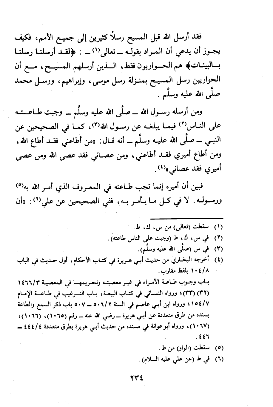 وَمَنْ أَرْسَلَهُ رَسُولُ اللَّهِ - صَلَّى اللَّهُ عَلَيْهِ وَسَلَّمَ - وَجَبَتْ طَاعَتُهُ عَلَى النَّاسِ فِيمَا يُبَلِّغُهُ عَنْ رَسُولِ اللَّهِ ; كَمَا فِي الصَّحِيحَيْنِ عَنِ النَّبِيِّ - صَلَّى اللَّهُ عَلَيْهِ وَسَلَّمَ - أَنَّهُ قَالَ: «مَنْ أَطَاعَنِي فَقَدْ أَطَاعَ اللَّهَ وَمَنْ أَطَاعَ أَمِيرِي فَقَدْ أَطَاعَنِي وَمَنْ عَصَانِي فَقَدْ عَصَى اللَّهَ وَمَنْ عَصَى أَمِيرِي فَقَدْ عَصَانِي» .