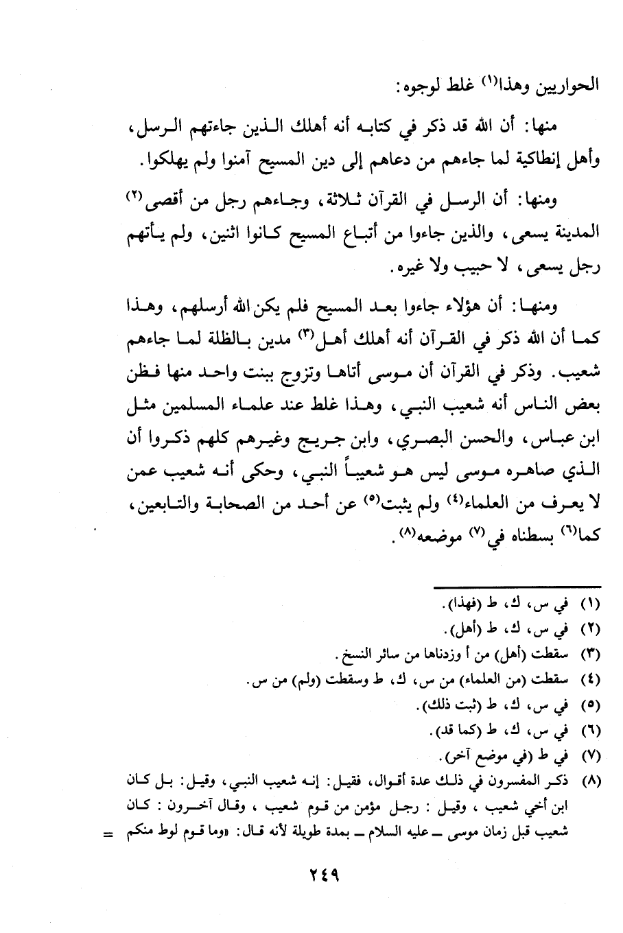 الْحَوَارِيِّينَ وَهَذَا غَلَطٌ لِوُجُوهٍ: مِنْهَا: أَنَّ اللَّهَ قَدْ ذَكَرَ فِي كِتَابِهِ أَنَّهُ أَهْلَكَ الَّذِينَ جَاءَتْهُمُ الرُّسُلُ وَأَهْلُ أَنْطَاكِيَةَ لَمَّا جَاءَهُمْ مَنْ دَعَاهُمْ إِلَى دِينِ الْمَسِيحِ آمَنُوا وَلَمْ يُهْلَكُوا.