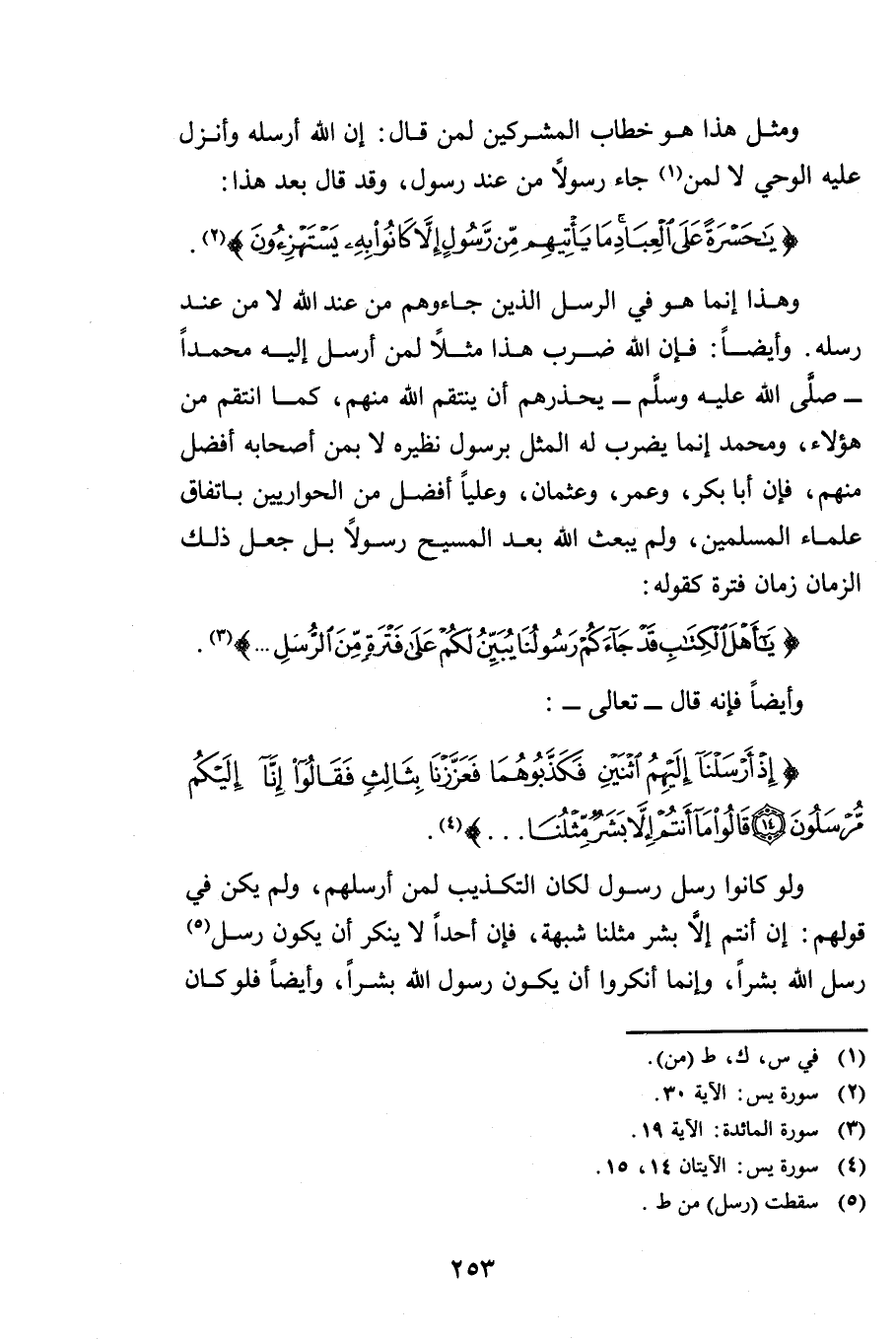 وَلَوْ كَانُوا رُسُلَ رَسُولٍ لَكَانَ التَّكْذِيبُ لِمَنْ أَرْسَلَهُمْ وَلَمْ يَكُنْ فِي قَوْلِهِمْ: إِنْ أَنْتُمْ إِلَّا بَشَرٌ مِثْلُنَا شُبْهَةً، فَإِنَّ أَحَدًا لَا يُنْكِرُ أَنْ يَكُونَ رُسُلُ رُسُلِ اللَّهِ بَشَرًا وَإِنَّمَا أَنْكَرُوا أَنْ يَكُونَ رَسُولُ اللَّهِ بَشَرًا، وَأَيْضًا فَلَوْ كَانَ