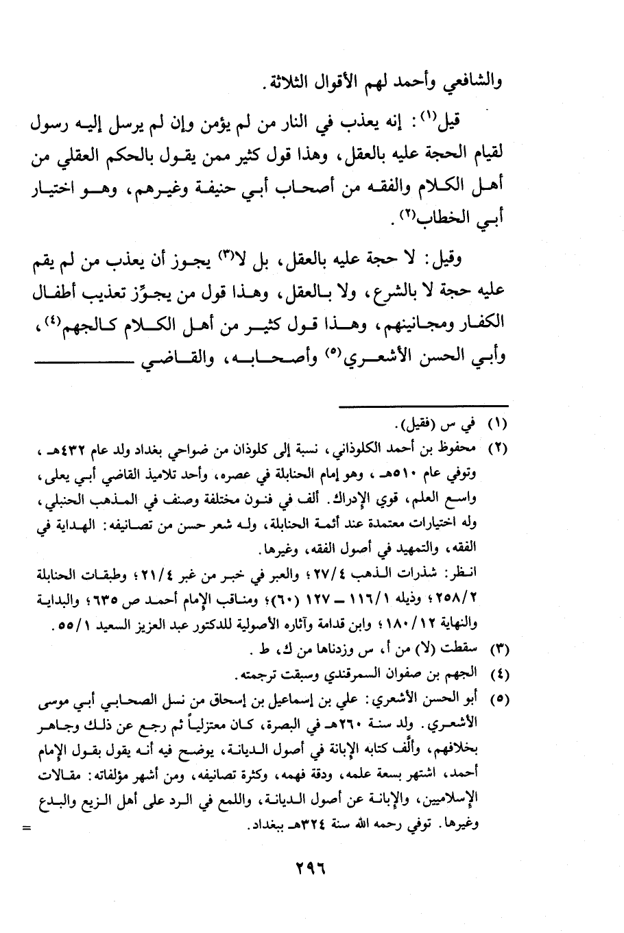 قِيلَ: أَنَّهُ يُعَذَّبُ فِي النَّارِ مَنْ لَمْ يُؤْمِنْ وَإِنْ لَمْ يُرْسَلْ إِلَيْهِ رَسُولٌ لِقِيَامِ الْحُجَّةِ عَلَيْهِ بِالْعَقْلِ وَهَذَا قَوْلُ كَثِيرٍ مِمَّنْ يَقُولُ بِالْحُكْمِ الْعَقْلِيِّ مِنْ أَهْلِ الْكَلَامِ وَالْفِقْهِ مِنْ أَصْحَابِ أَبِي حَنِيفَةَ وَغَيْرِهِمْ وَهُوَ اخْتِيَارُ أَبِي الْخَطَّابِ.