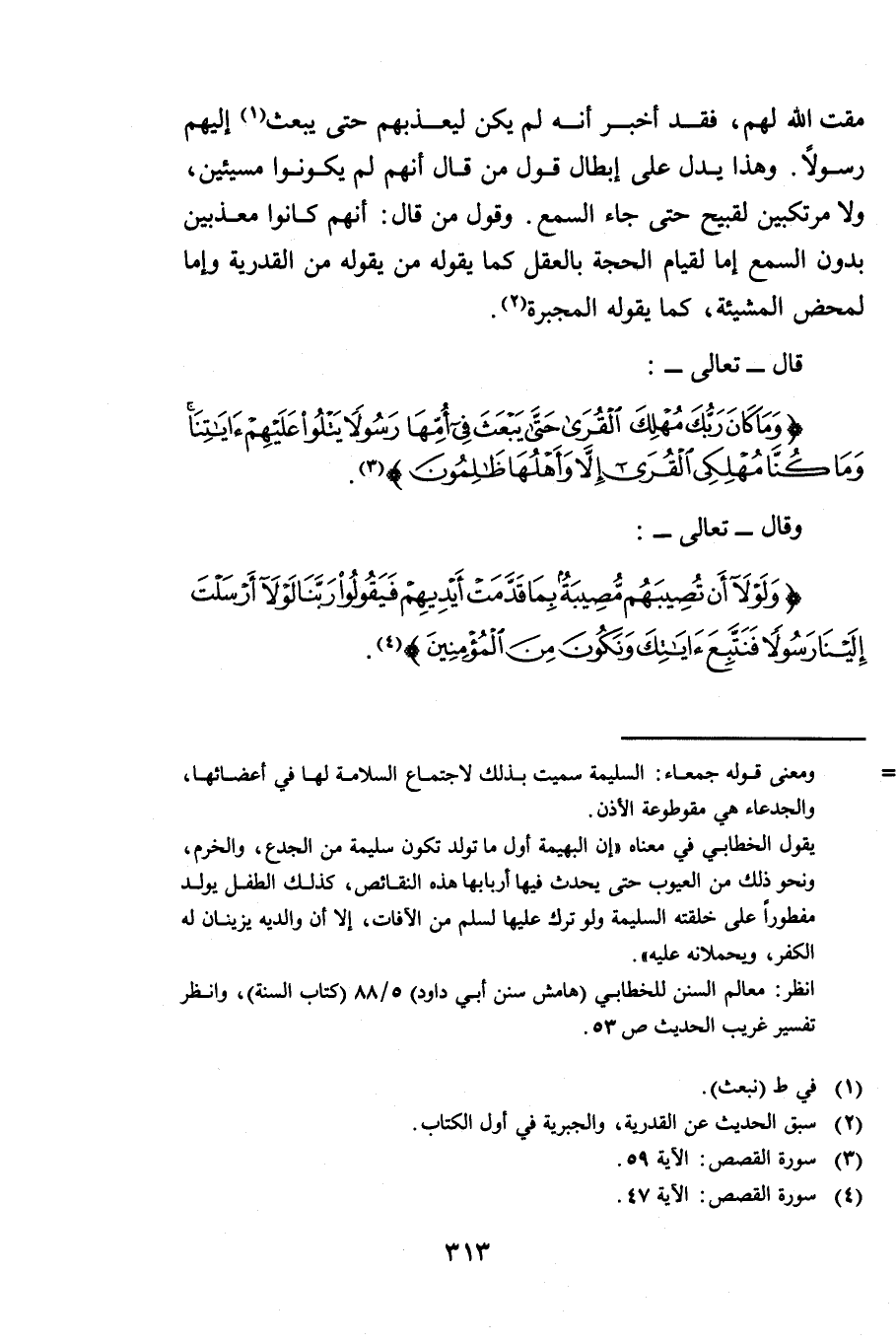 قَالَ - تَعَالَى -: {وَمَا كَانَ رَبُّكَ مُهْلِكَ الْقُرَى حَتَّى يَبْعَثَ فِي أُمِّهَا رَسُولًا يَتْلُو عَلَيْهِمْ آيَاتِنَا وَمَا كُنَّا مُهْلِكِي الْقُرَى إِلَّا وَأَهْلُهَا ظَالِمُونَ} [القصص: 59] وَقَالَ - تَعَالَى -: {وَلَوْلَا أَنْ تُصِيبَهُمْ مُصِيبَةٌ بِمَا قَدَّمَتْ أَيْدِيهِمْ فَيَقُولُوا رَبَّنَا لَوْلَا أَرْسَلْتَ إِلَيْنَا رَسُولًا فَنَتَّبِعَ آيَاتِكَ وَنَكُونَ مِنَ الْمُؤْمِنِينَ} [القصص: 47]