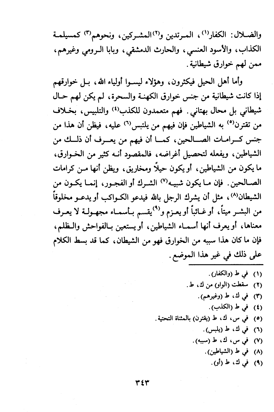 وَالضُّلَّالِ الْكُفَّارِ الْمُرْتَدِّينَ وَالْمُشْرِكِينَ وَنَحْوِهِمْ كَمُسَيْلِمَةَ الْكَذَّابِ وَالْأَسْوَدِ الْعَنْسِيِّ وَالْحَارِثِ الدِّمَشْقِيِّ وَبَابَا الرُّومِيِّ وَغَيْرِهِمْ مِمَّنْ لَهُمْ خَوَارِقُ شَيْطَانِيَّةٌ.