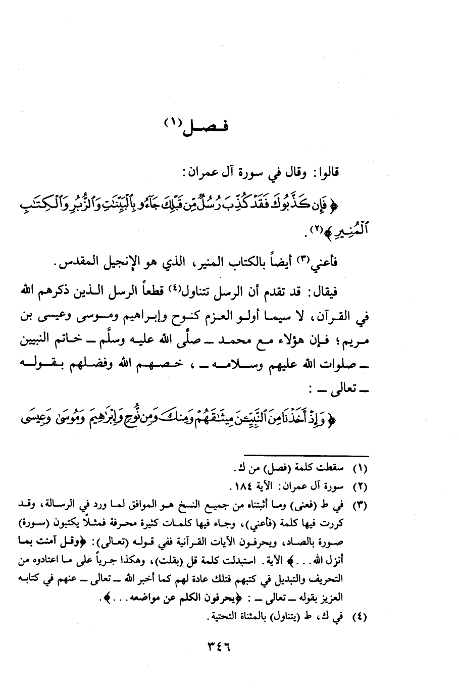قَالُوا: وَقَالَ فِي سُورَةِ آلِ عِمْرَانَ: {فَإِنْ كَذَّبُوكَ فَقَدْ كُذِّبَ رُسُلٌ مِنْ قَبْلِكَ جَاءُوا بِالْبَيِّنَاتِ وَالزُّبُرِ وَالْكِتَابِ الْمُنِيرِ} [آل عمران: 184] فَأُعْنِيَ أَيْضًا بِالْكِتَابِ الْمُنِيرِ الَّذِي هُوَ الْإِنْجِيلُ الْمُقَدَّسُ.