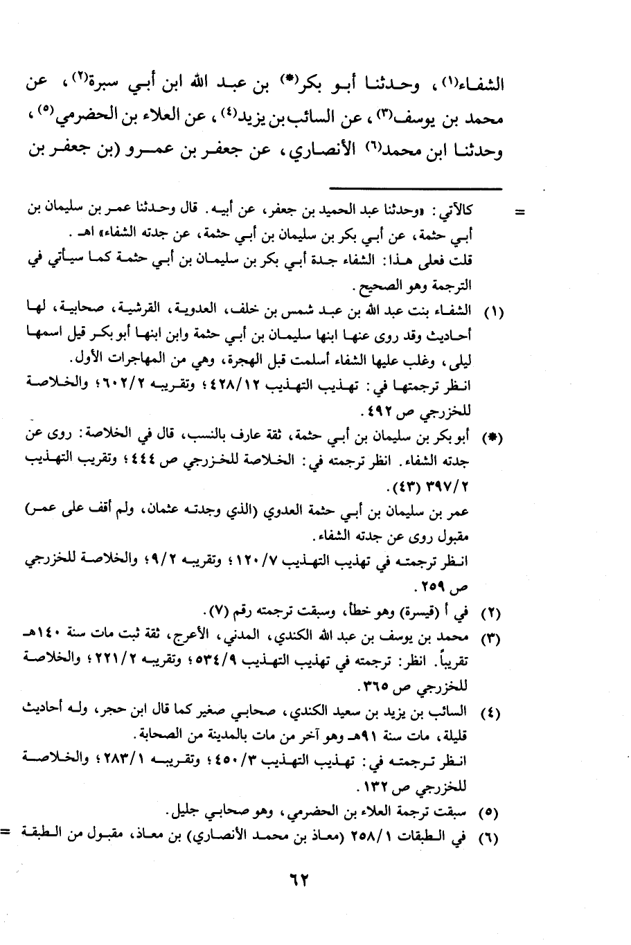 الشِّفَاءِ وَحَدَّثَنَا أَبُو بَكْرِ بْنُ عَبْدِ اللَّهِ بْنِ أَبِي سَبْرَةَ عَنْ مُحَمَّدِ بْنِ يُوسُفَ عَنِ السَّائِبِ بْنِ يَزِيدَ عَنِ الْعَلَاءِ بْنِ الْحَضْرَمِيِّ وَحَدَّثَنَا ابْنُ مُحَمَّدٍ الْأَنْصَارِيُّ عَنْ جَعْفَرِ بْنِ عَمْرِو (بْنِ جَعْفَرِ بْنِ