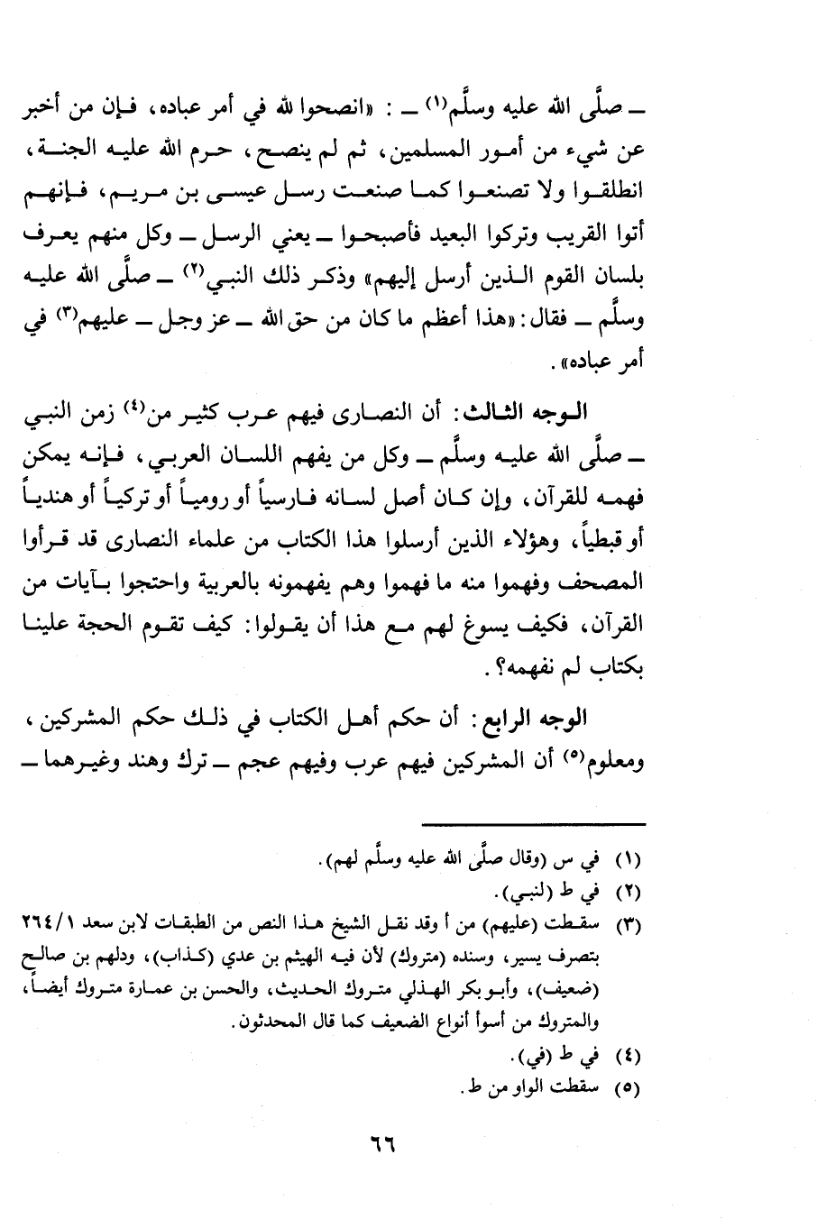 الْوَجْهُ الثَّالِثُ: أَنَّ النَّصَارَى فِيهِمْ عَرَبٌ كَثِيرٌ مِنْ زَمَنِ النَّبِيِّ - صَلَّى اللَّهُ عَلَيْهِ وَسَلَّمَ - وَكُلُّ مَنْ يَفْهَمُ اللِّسَانَ الْعَرَبِيَّ، فَإِنَّهُ يُمْكِنُ فَهْمُهُ لِلْقُرْآنِ وَإِنْ كَانَ أَصْلُ لِسَانِهِ فَارِسِيًّا أَوْ رُومِيًّا أَوْ تُرْكِيًّا أَوْ هِنْدِيًّا أَوْ قِبْطِيًّا وَهَؤُلَاءِ الَّذِينَ أَرْسَلُوا هَذَا الْكِتَابَ مِنْ عُلَمَاءِ النَّصَارَى قَدْ قَرَءُوا الْمُصْحَفَ وَفَهِمُوا مِنْهُ مَا فَهِمُوا وَهُمْ يَفْهَمُونَهُ بِالْعَرَبِيَّةِ وَاحْتَجُّوا بِآيَاتٍ مِنَ الْقُرْآنِ فَكَيْفَ يَسُوغُ لَهُمْ مَعَ هَذَا أَنْ يَقُولُوا كَيْفَ تَقُومُ الْحُجَّةُ عَلَيْنَا بِكِتَابٍ لَمْ نَفْهَمْهُ؟ .