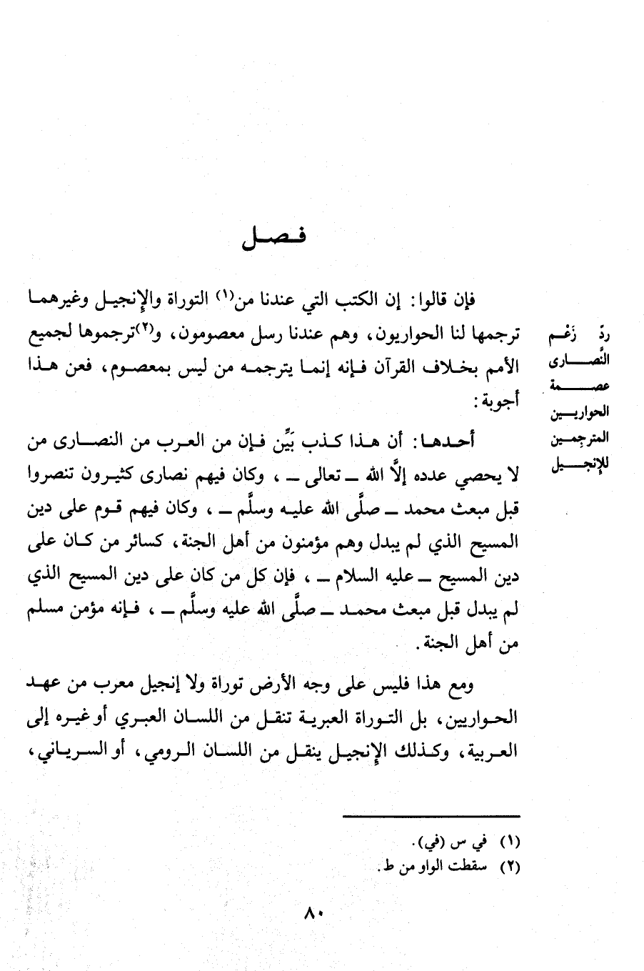 وَمَعَ هَذَا فَلَيْسَ عَلَى وَجْهِ الْأَرْضِ تَوْرَاةٌ وَلَا إِنْجِيلُ مُعَرَّبٌ مِنْ عَهْدِ الْحَوَارِيِّينَ بَلِ التَّوْرَاةُ الْعِبْرِيَّةُ تُنْقَلُ مِنَ اللِّسَانِ الْعِبْرِيِّ أَوْ غَيْرِهِ إِلَى الْعَرَبِيَّةِ وَكَذَلِكَ الْإِنْجِيلُ يُنْقَلُ مِنَ اللِّسَانِ الرُّومِيِّ أَوِ السُّرْيَانِيِّ
