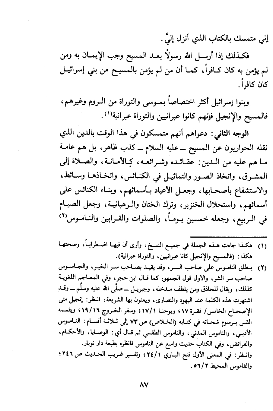 وَبَنُو إِسْرَائِيلَ أَكْثَرُ اخْتِصَاصًا بِمُوسَى وَالتَّوْرَاةِ مِنَ الرُّومِ وَغَيْرِهِمْ فَالْمَسِيحُ وَالْإِنْجِيلُ، فَإِنَّهُمْ كَانُوا عِبْرَانِيِّينَ وَالتَّوْرَاةُ عِبْرَانِيَّةٌ.