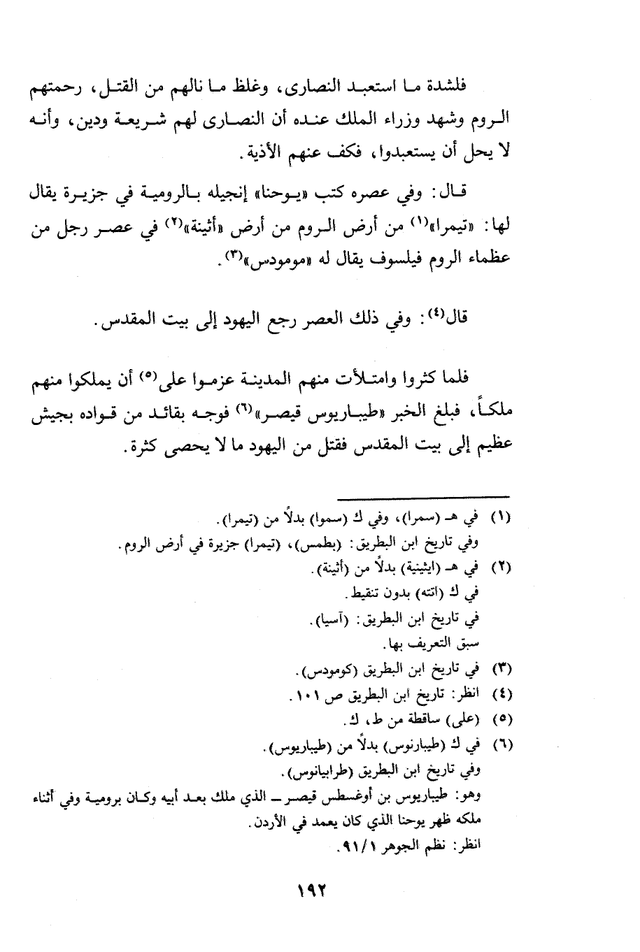 قَالَ: وَفِي عَصْرِهِ كَتَبَ " يُوحَنَّا " إِنْجِيلَهُ بِالرُّومِيَّةِ فِي جَزِيرَةٍ يُقَالُ لَهَا: " تِيمْرَا " مِنْ أَرْضِ الرُّومِ مِنْ أَرْضِ " أَثِينَةَ " فِي عَصْرِ رَجُلٍ مِنْ عُظَمَاءَ الرُّومِ فَيْلَسُوفٍ يُقَالُ لَهُ: " مُومُودِسُ ".