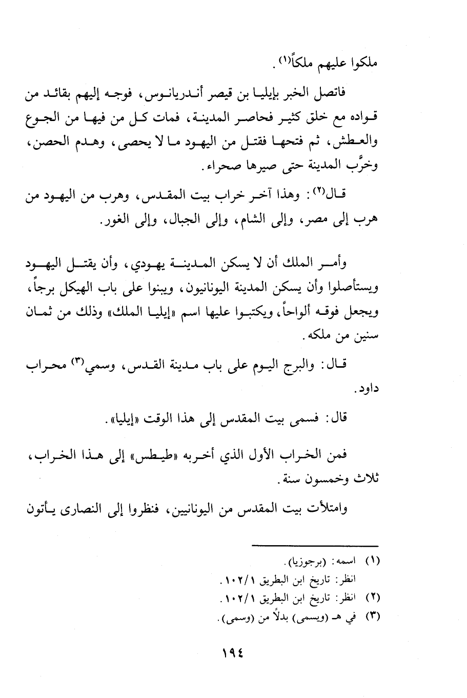 قَالَ: وَهَذَا آخِرُ خَرَابِ بَيْتِ الْمَقْدِسِ، وَهَرَبَ مِنَ الْيَهُودِ مَنْ هَرَبَ إِلَى مِصْرَ وَإِلَى الشَّامِ وَإِلَى الْجِبَالِ وَإِلَى الْغَوْرِ.