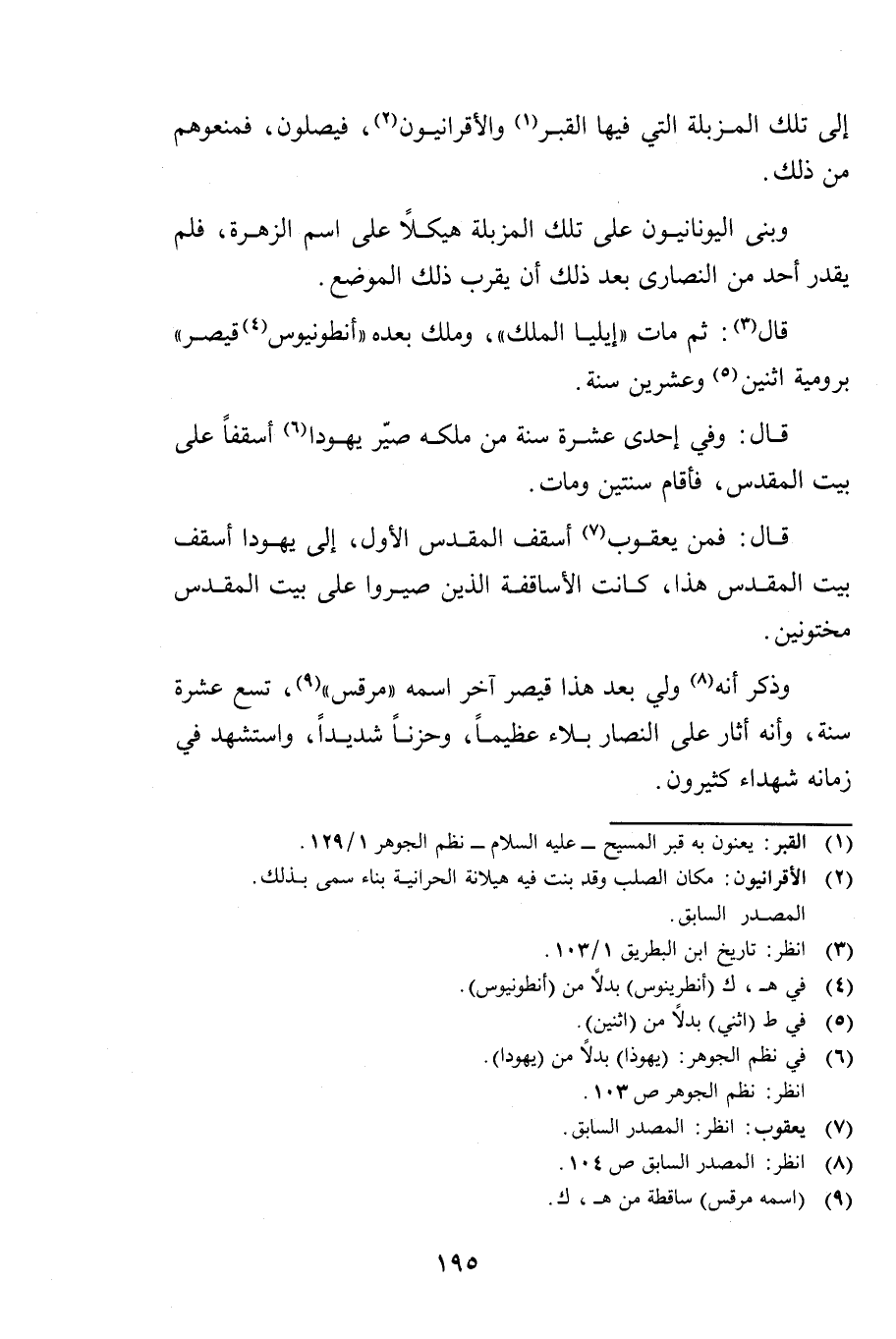 قَالَ: فَمِنْ يَعْقُوبَ أُسْقُفِّ الْمَقْدِسِ الْأَوَّلِ إِلَى يَهُودَا أُسْقُفِّ بَيْتِ الْمَقْدِسِ هَذَا، كَانَتِ الْأَسَاقِفَةُ الَّذِينَ صُيِّرُوا عَلَى بَيْتِ الْمَقْدِسِ مَخْتُونِينَ.