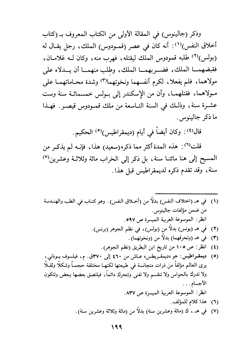 قُلْتُ: هَذِهِ الْمُدَّةُ أَكْثَرُ مِمَّا ذَكَرَهُ " سَعِيدٌ " هَذَا، فَإِنَّهُ لَمْ يَذْكُرْ مِنَ الْمَسِيحِ إِلَى هُنَا مِائَتَا سَنَةٍ، بَلْ ذَكَرَ إِلَى الْخَرَابِ مِائَةً وَثَلَاثَةً وَعِشْرِينَ سَنَةً، وَقَدْ تَقَدَّمَ ذِكْرُهُ " لِدِيمُقْرَاطِيسَ " قَبْلَ هَذَا.