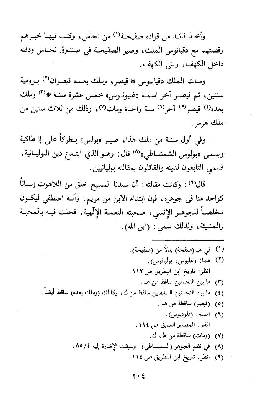 وَفِي أَوَّلِ سَنَةٍ مِنْ مُلْكِ هَذَا، صَيَّرَ " بُولُسَ " بَطْرَكًا عَلَى أَنْطَاكِيَّةَ وَيُسَمَّى: " بُولُوسُ الشِّمْشَاطِيُّ " قَالَ: وَهُوَ الَّذِي ابْتَدَعَ دِينَ " الْبُولْيَانِيَّةِ "، فَسُمِّيَ التَّابِعُونَ لِدِينِهِ وَالْقَائِلُونَ بِمَقَالَتِهِ بُولْيَانِيِّينَ.