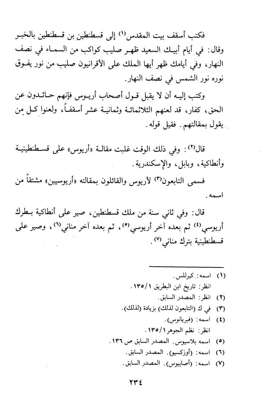 قَالَ: وَفِي ذَلِكَ الْوَقْتِ غَلَبَتْ مَقَالَةُ " أَرِيُوسَ " عَلَى قُسْطَنْطِينِيَّةَ وَأَنْطَاكِيَةَ وَبَابِلَ وَالْإِسْكَنْدَرِيَّةِ.