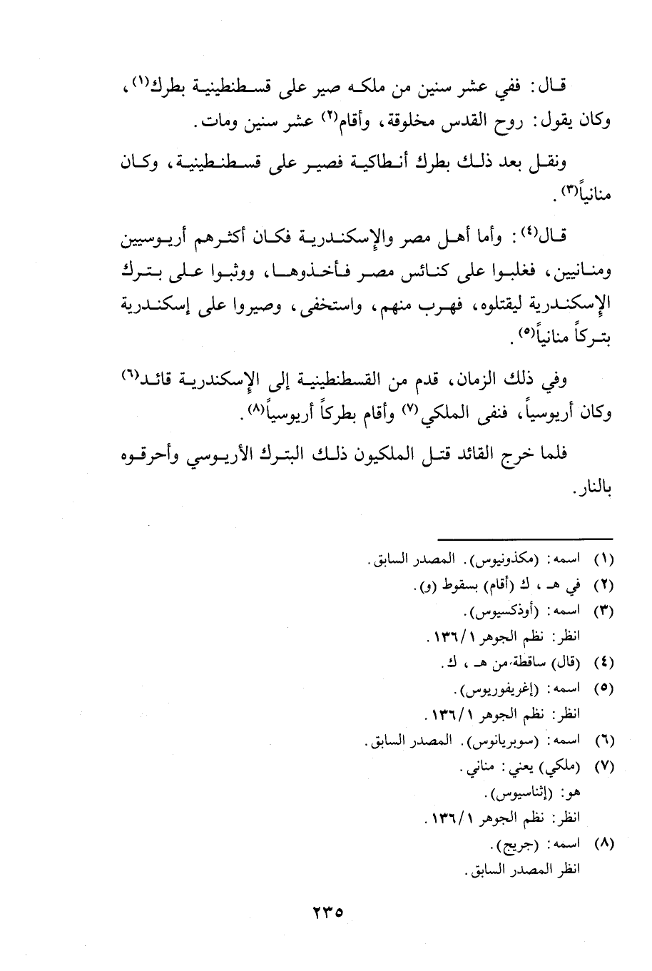 فَلَمَّا خَرَجَ الْقَائِدُ قَتَلَ الْمَلِكِيُّونَ ذَلِكَ الْبَتْرَكَ الْأَرِيُوسِيَّ وَأَحْرَقُوهُ بِالنَّارِ.