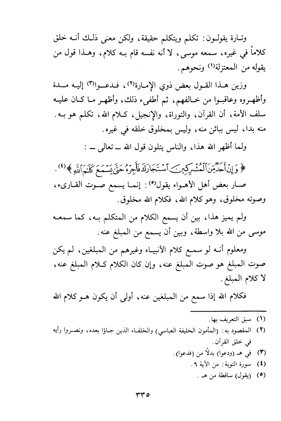 فَكَلَامُ اللَّهِ إِذَا سُمِعَ مِنَ الْمُبَلِّغِينَ عَنْهُ، أَوْلَى أَنْ يَكُونَ هُوَ كَلَامُ اللَّهِ